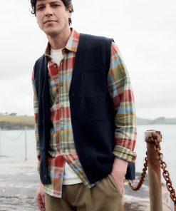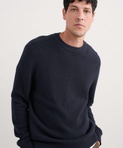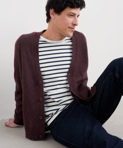 Seasalt Cornwall Men’s Organic Cotton Knitted V-neck Jumper – Mainbrace Jumper | Vintage Indigo
