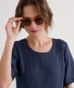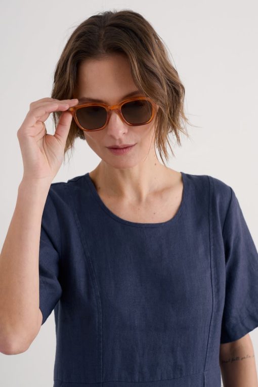 A vintage-inspired pair of sunglasses with square lenses, in tones which compliment the outer frame which is made from 90% recycled polycarbonate. Choose from matt, glossy and semi-sheer colours, with subtle Seasalt branding on the inner arm. The perfect finishing touch to your summer outfit.