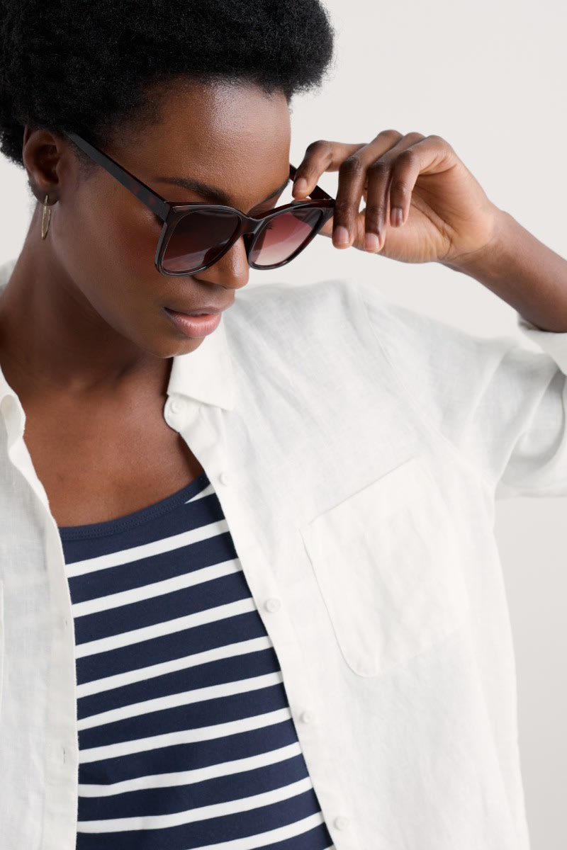 Classic sunglasses with rounded square lenses, and a subtle Seasalt anchor on the inner arm. The perfect finishing touch on sultry summer days.