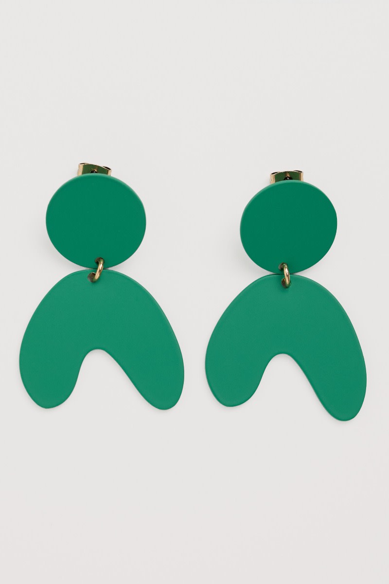 Make a statement in these distinctive, contemporary earrings. A bold abstract shape is suspended from a disc by a metal ring, bringing movement to these outfit-making accessories. The resin coating gives a clean and brightly coloured finish.