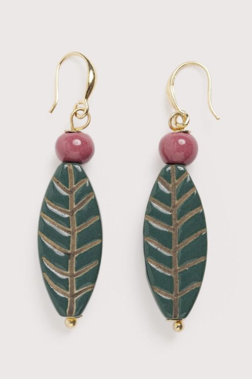 Accessories Jewellery Ceramic Leaf Drop Earrings | Seasalt Cornwall | Dark Forage