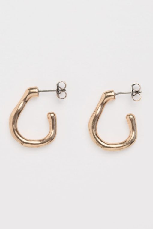 Our Feroner earrings are a contemporary take on the classic half hoop design. Their irregular shape gives them a natural feel, while the lightly textured gold-toned finish catches the light. A versatile pair of earrings for day or evening wear.