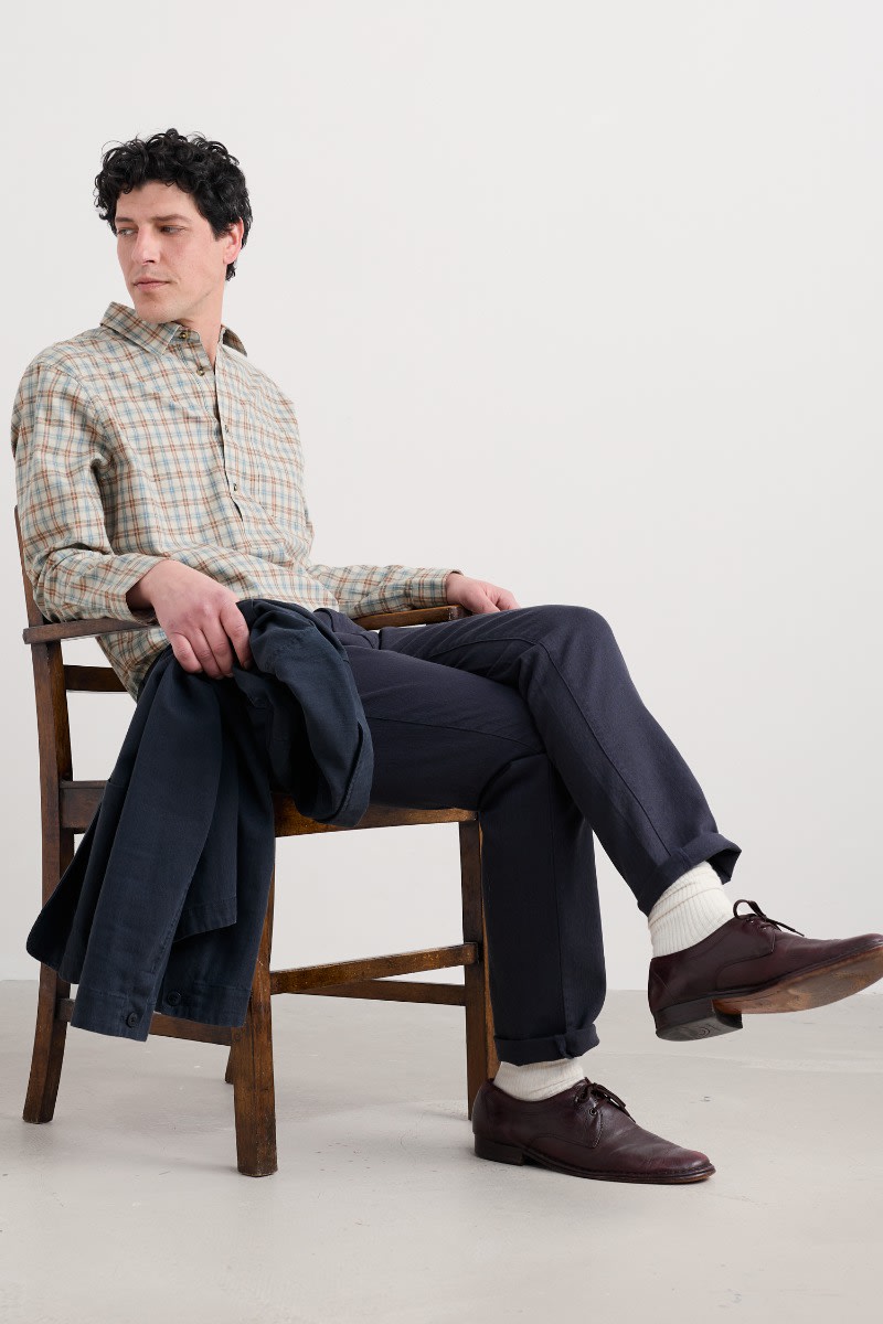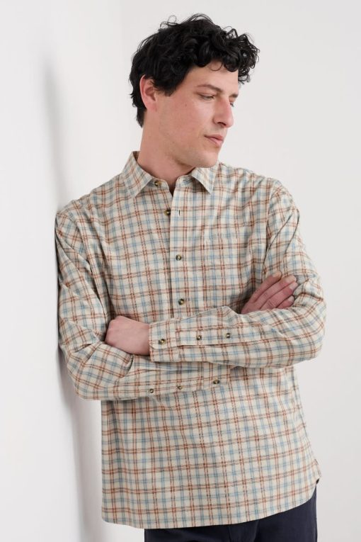 With an easy half-placket style and a relaxed fit, our Take Root Shirt is a weekend wardrobe essential. Its checks are yarn-dyed for rich and lasting colour, in hues inspired by the Cornish coast. The patch pocket on the chest is reinforced with an internal panel for a practical detail, while cuffs with mock horn buttons add a smarter touch. Designed to be worn untucked with a curved hem and side splits.