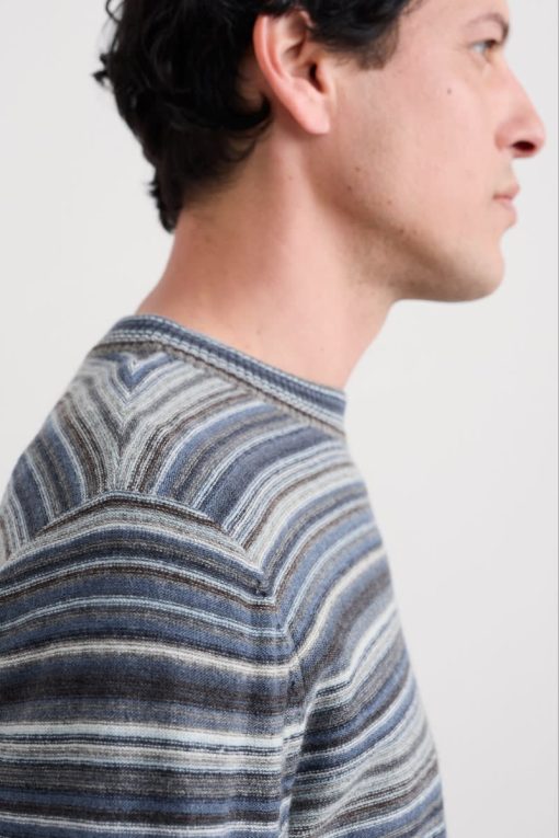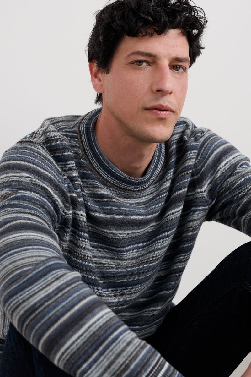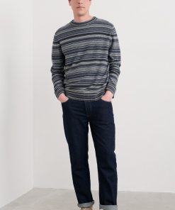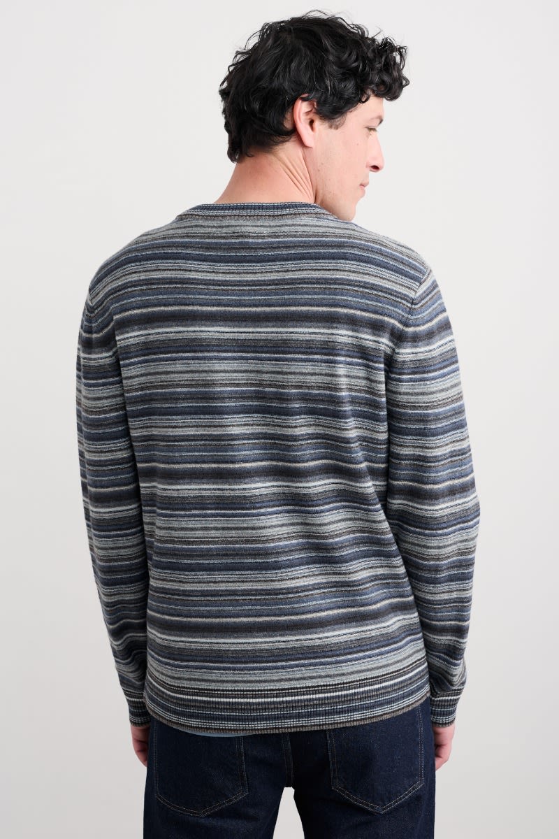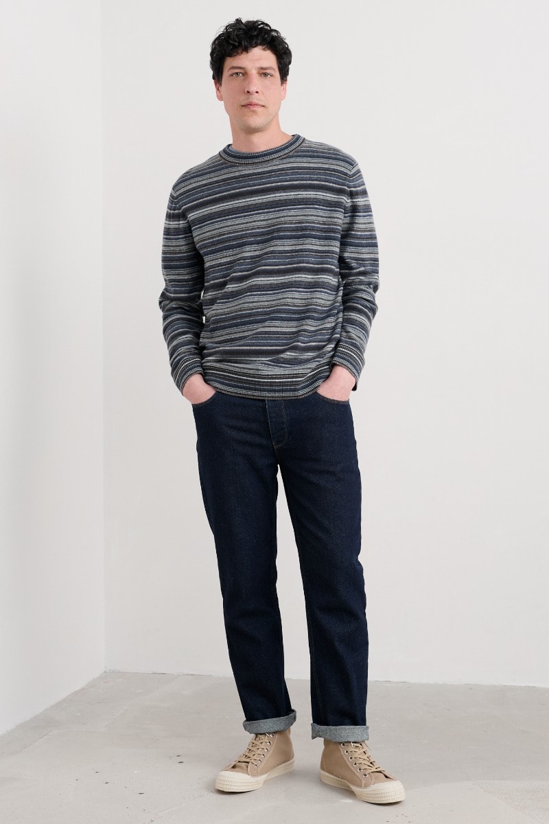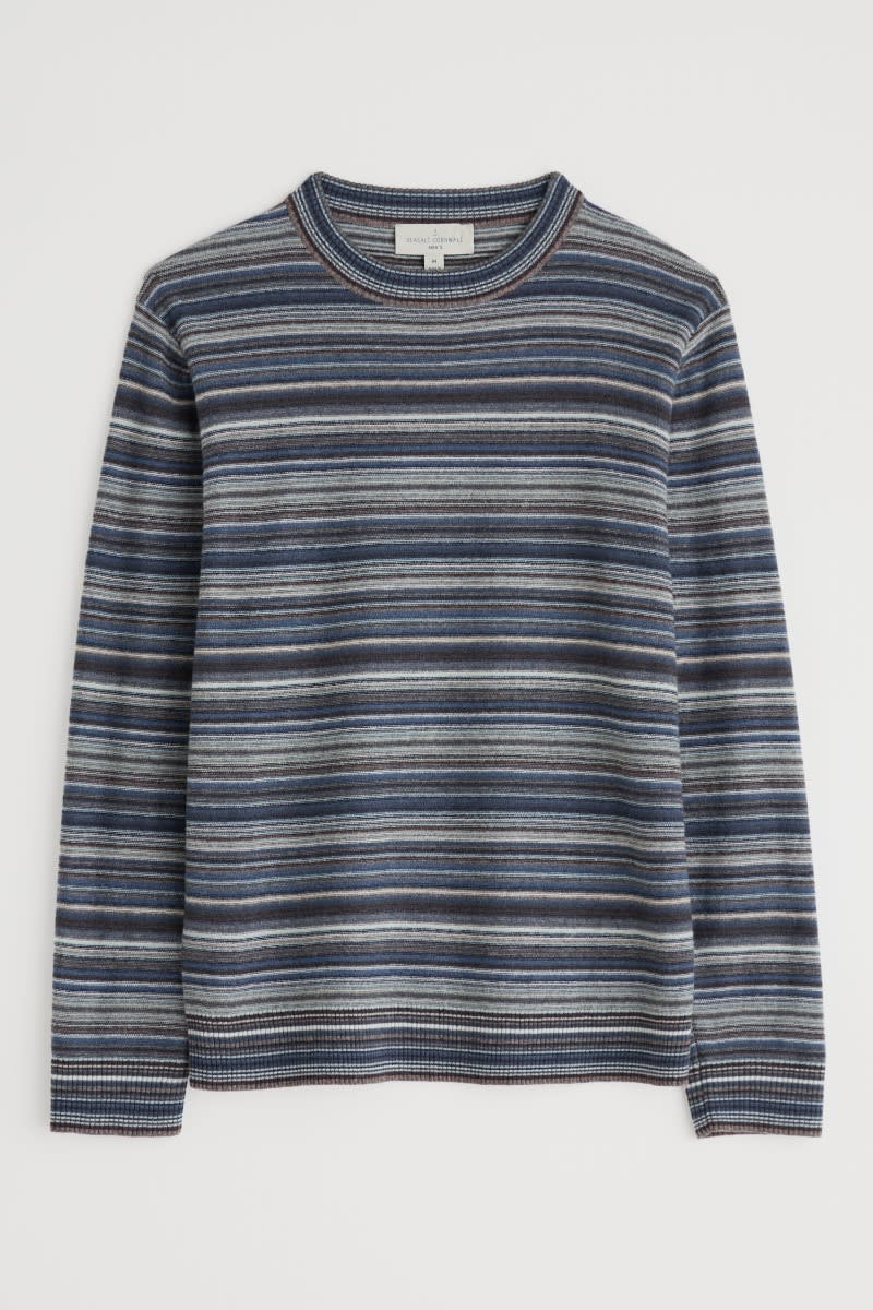 Crafted from a rich lambswool blend, our stripey Notebook jumper is soft and supple to wear. Its lightweight knit is warm without weighing you down, making this the perfect piece for cooler days. We’ve used garter stitch for a subtly textured feel, while ribbed trims at the crew neck, cuffs and hem give the jumper a classic finish.