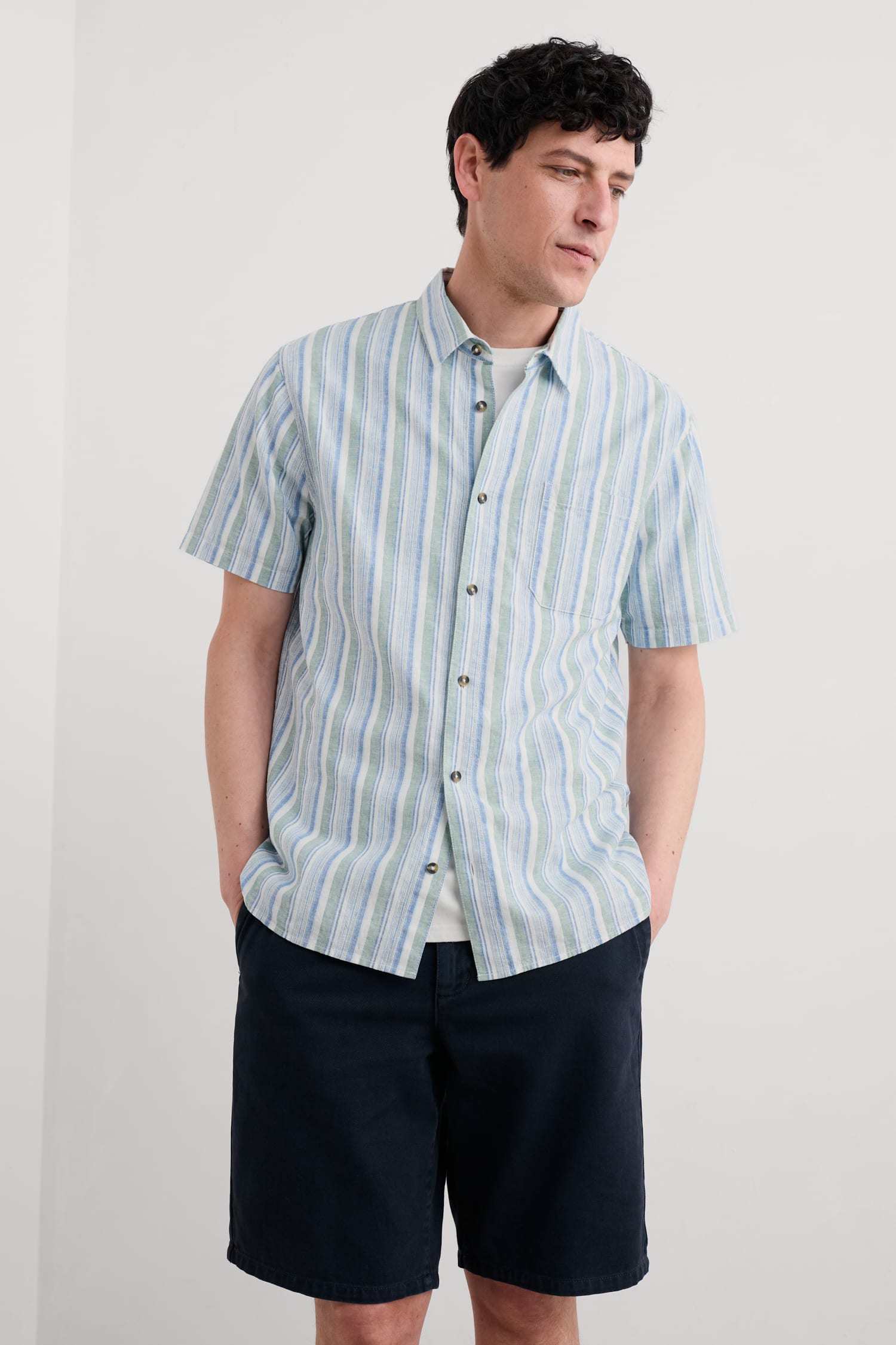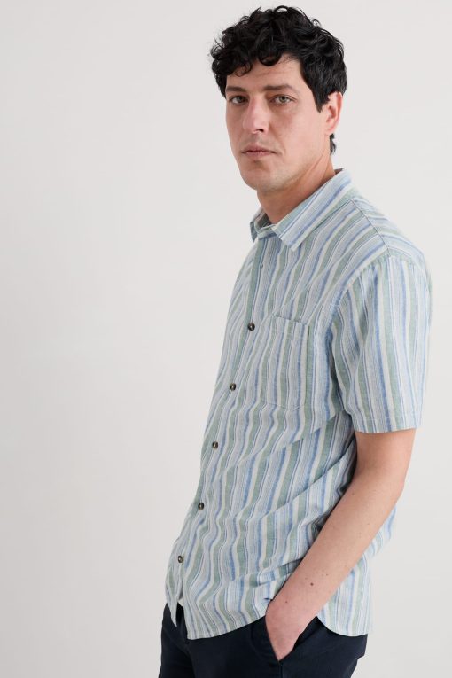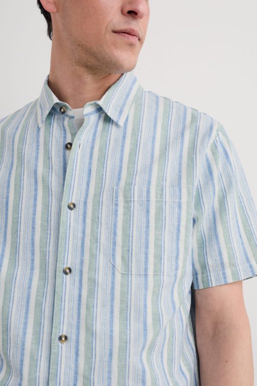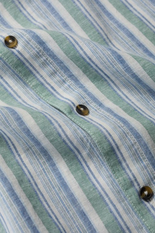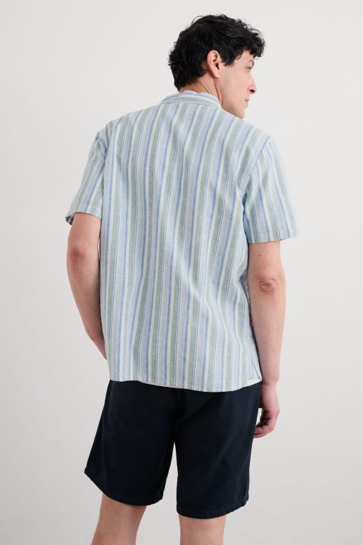 Made from a cool linen-cotton blend and with an easy, relaxed fit, our Dopper Shirt is perfect for warmer days. The mixed stripes are yarn-dyed to enhance their vibrant coastal colours, and we’ve added smart-casual touches like a neat collar and chest pocket. A versatile piece for the summer.