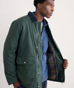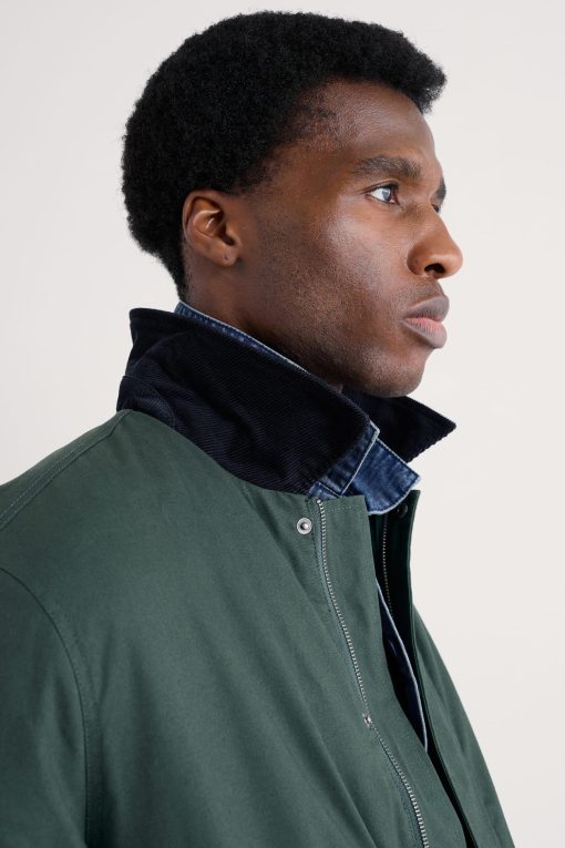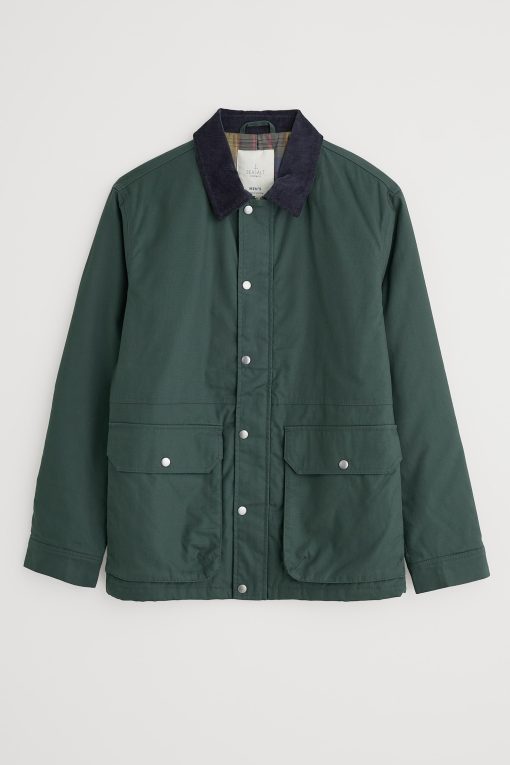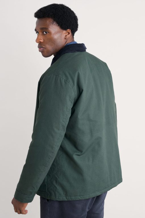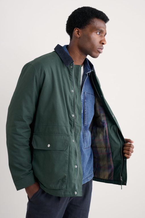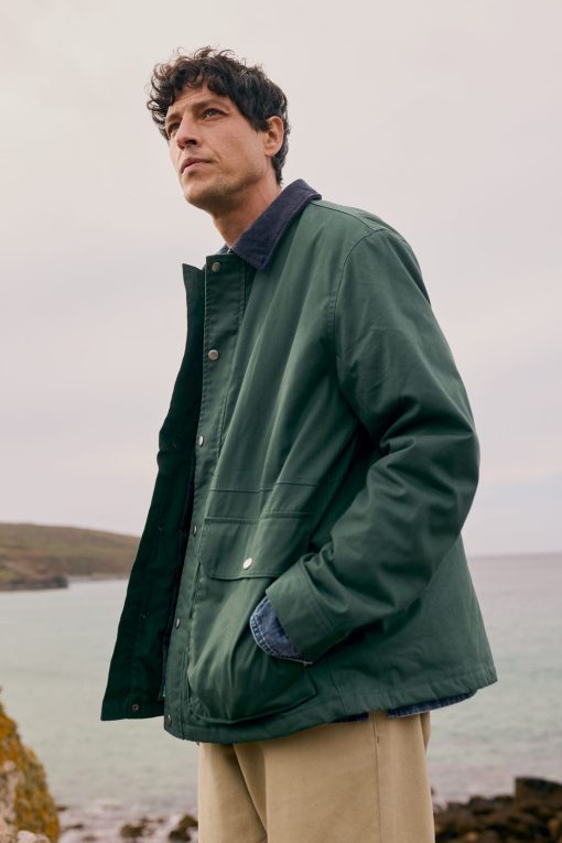 Our worker jacket-inspired coat is just the thing for the (slightly) warmer weather. The relaxed-fit coat is made from organic cotton, and is lightly padded with recycled polyester wadding for just that extra touch of snugness. We’ve added a pair of generous patch pockets, which have darts for added volume, as well as lined side entry pockets. The collar in contrasting cord provides a stylish finishing touch. A coat to take you through the seasons.