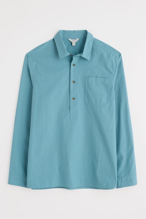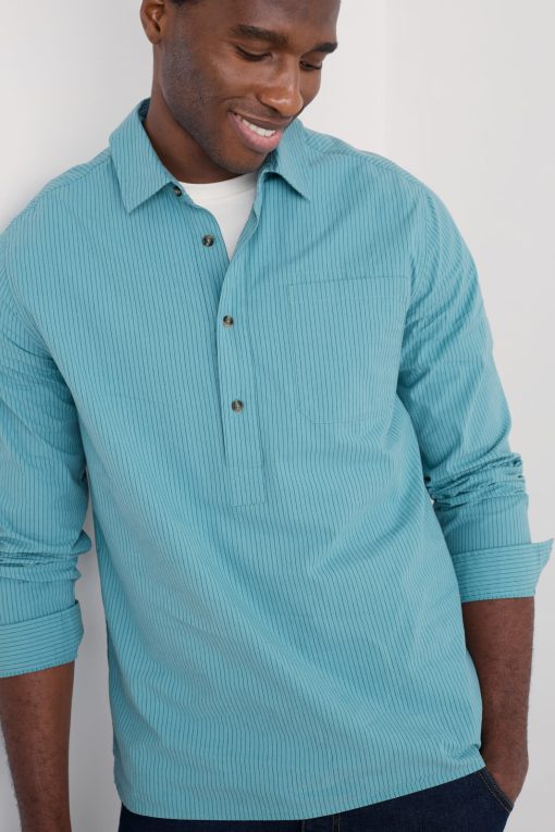 A new hero piece for your casual wardrobe, the Trevallack Shirt is crafted from woven organic cotton, which is yarn-dyed for deep and lasting colour. The narrow stripes add a touch of character to the easy-wearing popover shirt, along with that classic smart-casual feature, the chest pocket. The mock horn buttons on the half placket match those on the cuffs.