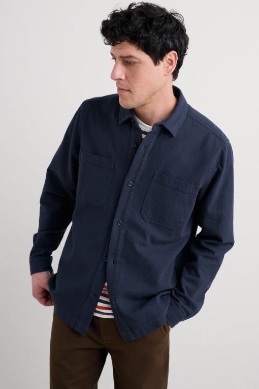 Made from pure organic cotton, woven in a textured diamond jacquard pattern, delivering subtle and tactile depth. Featuring a relaxed fit, button-up body and double chest pockets. This overshirt offers practical style with a casual edge. Perfect for layering.