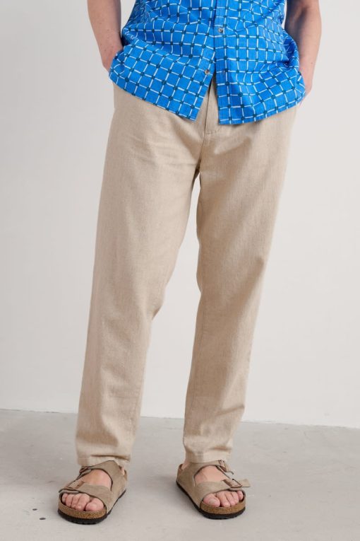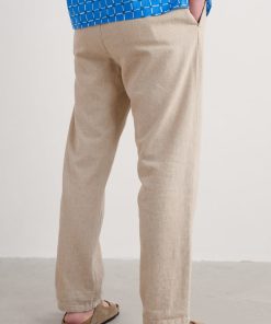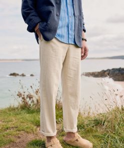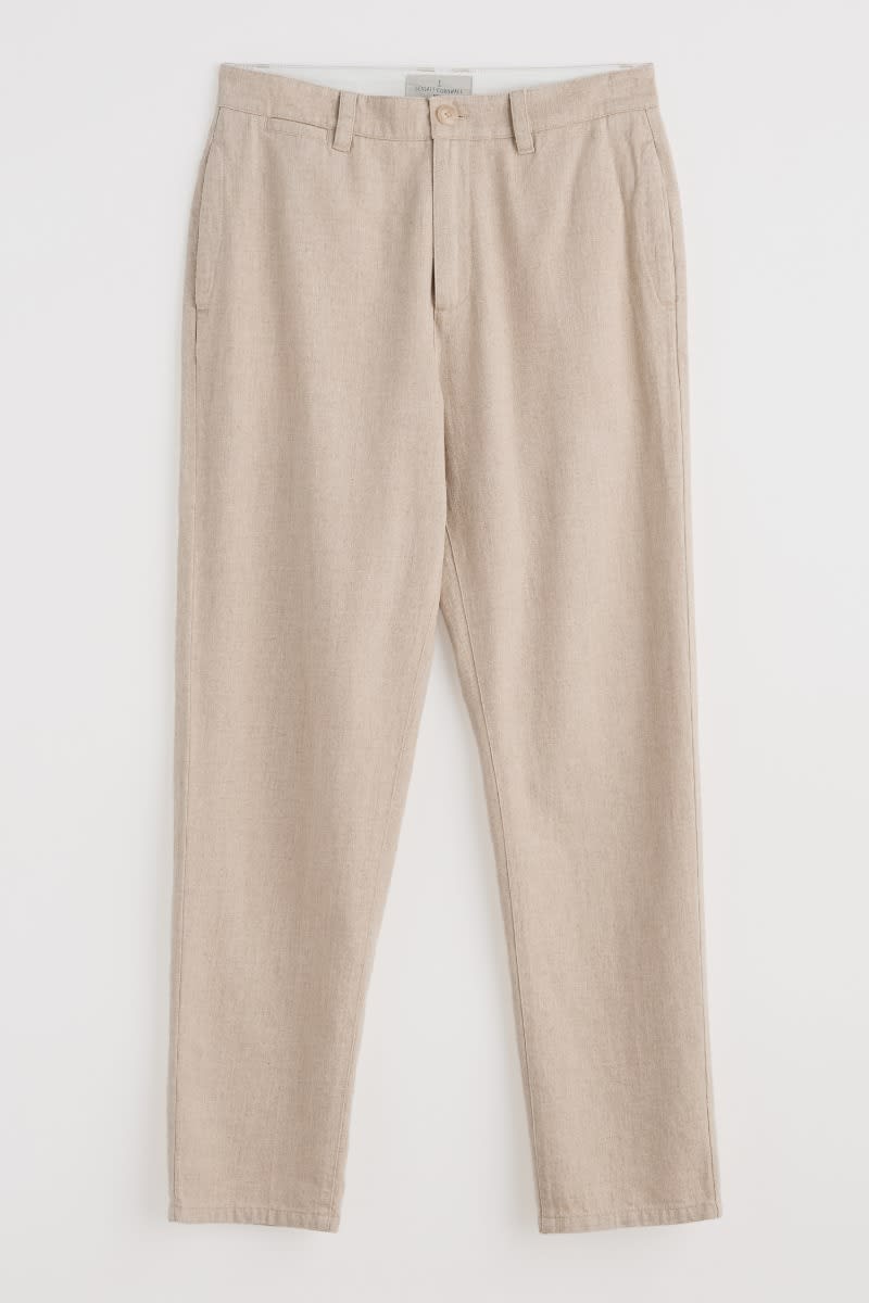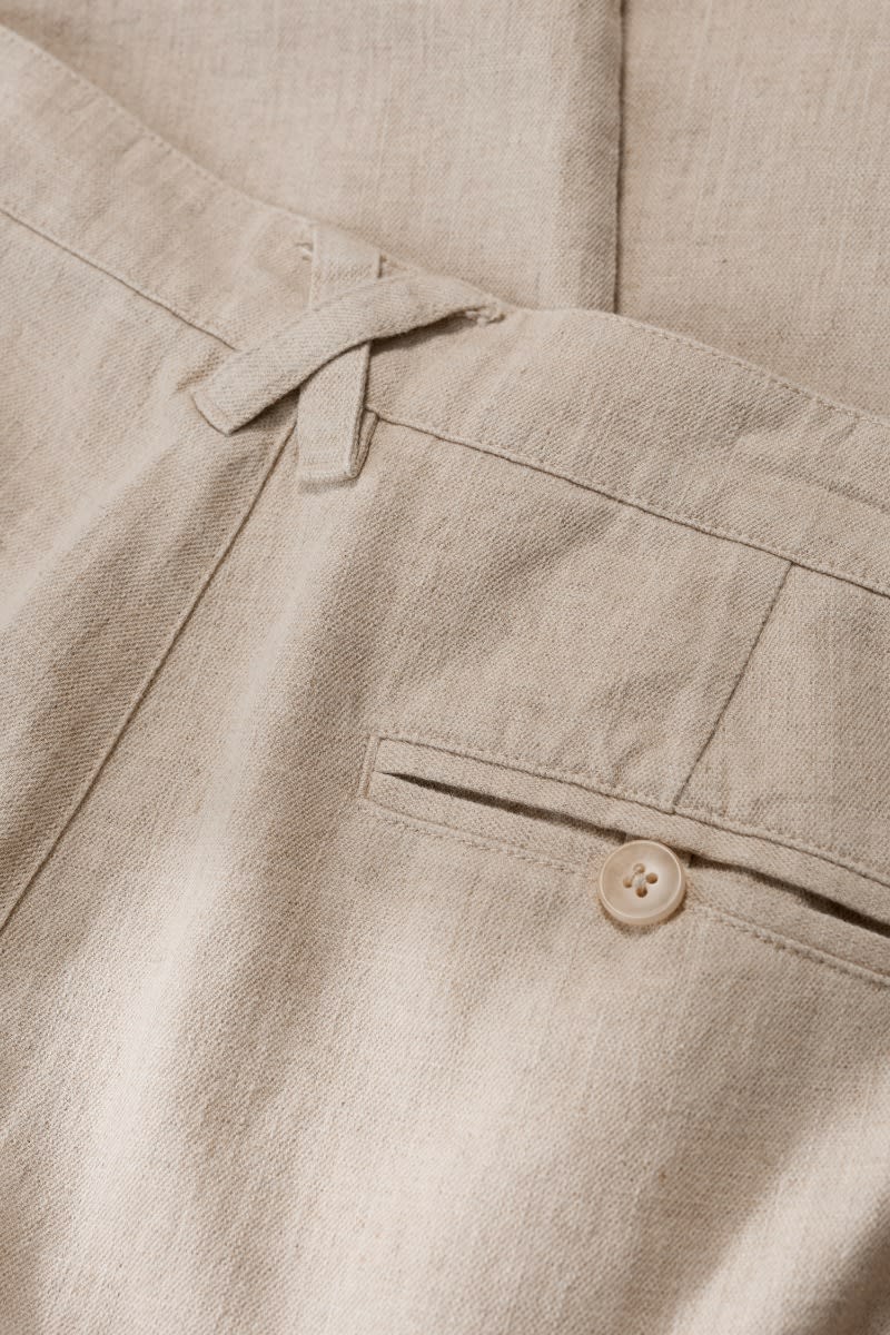 Crafted from a soft and cool woven cotton-linen blend, our Messack Trousers are made for warmer days. They have a modern, slim-fit cut with darts at the back for shaping. Side seam pockets, back double jetted pockets and self-fabric belt loops add classic finishing touches. Pair with the undyed Messack Jacket for relaxed summer suiting.