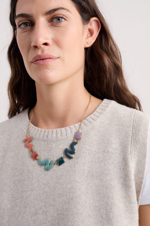 A necklace of colourful brushstroke-inspired shapes to add a joyful, art-inspired touch to any outfit. The enamel colours are designed to tone in perfectly with our current collection, and pair with our matching Sunny Corner Earrings.