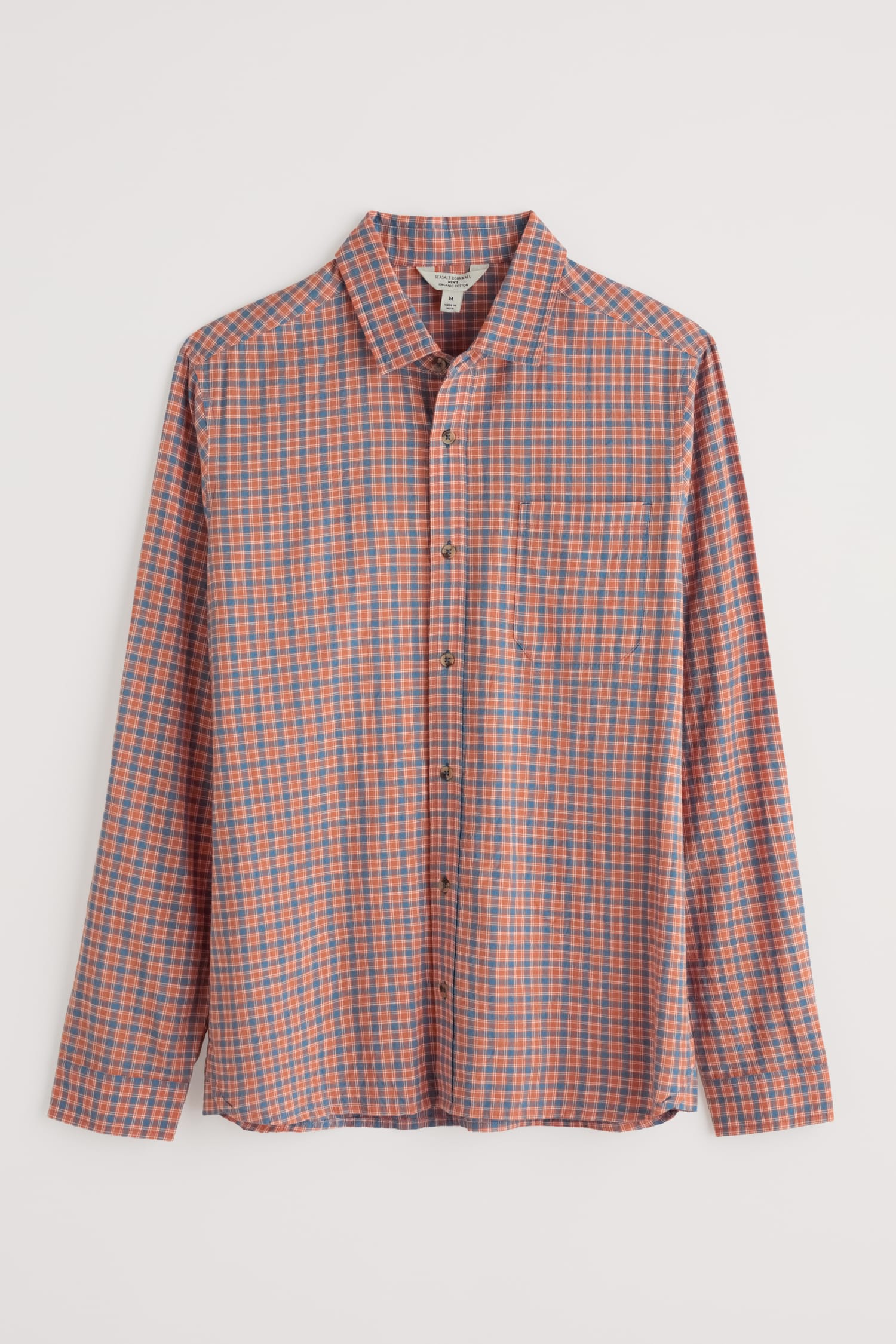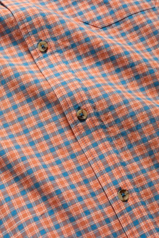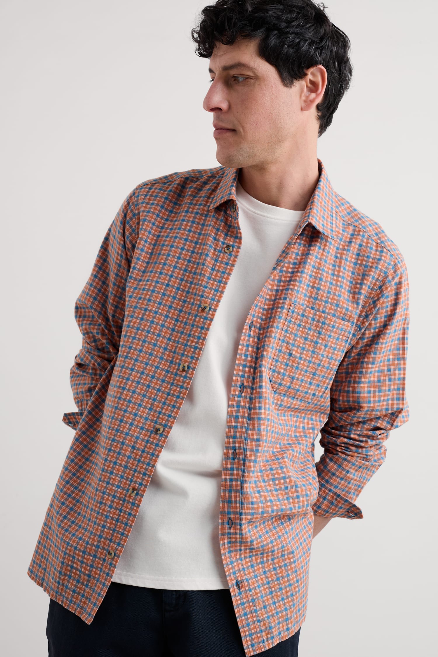 Easy button down shirt woven from breathable organic cotton, with a yarn-dyed check. Splits at the sides complement the easy fit, perfect for wearing untucked over jeans, over a T-shirt or under a jacket. Cuffs are fastened by buttons, and can be rolled up for a more casual look.