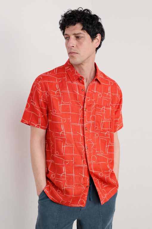 Made for summer barbeques, seaside breaks and sunny days spent on the water. A short-sleeved shirt for men in pure linen with unique, coastal Seasalt prints.