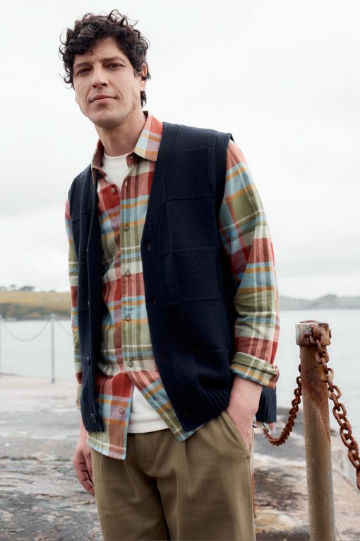 Seasalt Cornwall Men’s Gwelva Lambswool Blend Knitted V-neck Vest | Maritime