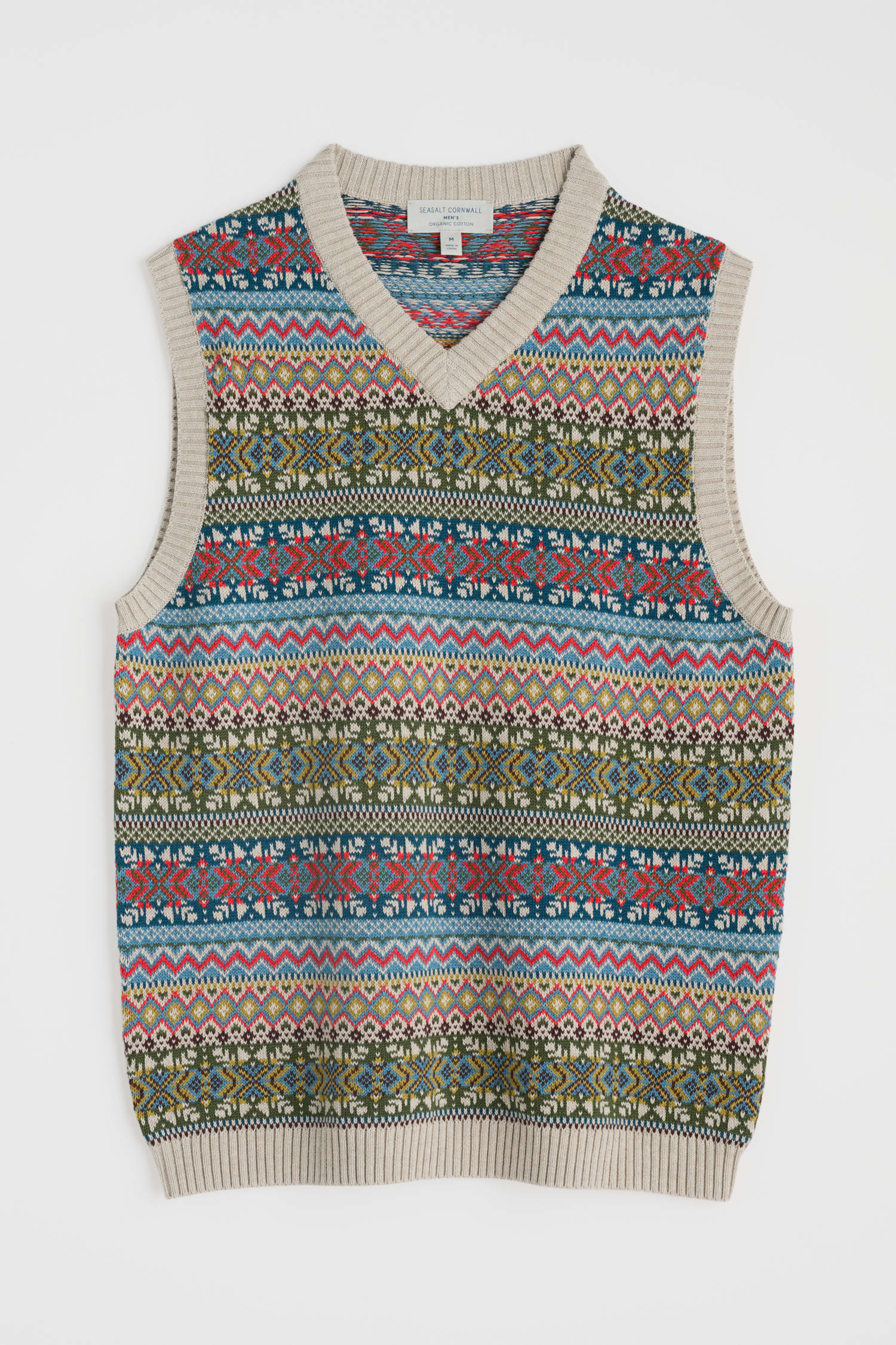 Seasalt Cornwall Men’s Kitto Fair Isle Knitted Vest | Twigs Kingfisher