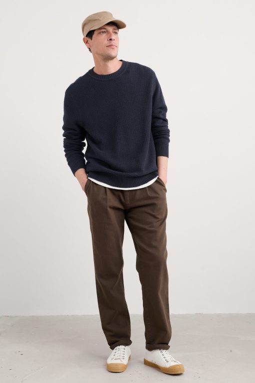 Update your casual wardrobe with this easy-wearing jumper, made from soft and breathable organic cotton. We’ve used a tuck stitch to create a waffly textured finish, while the medium-weight knit makes it a versatile layering piece. It’s finished with neat ribbed trims on the crew neck, cuffs and hem. A real future favourite.
