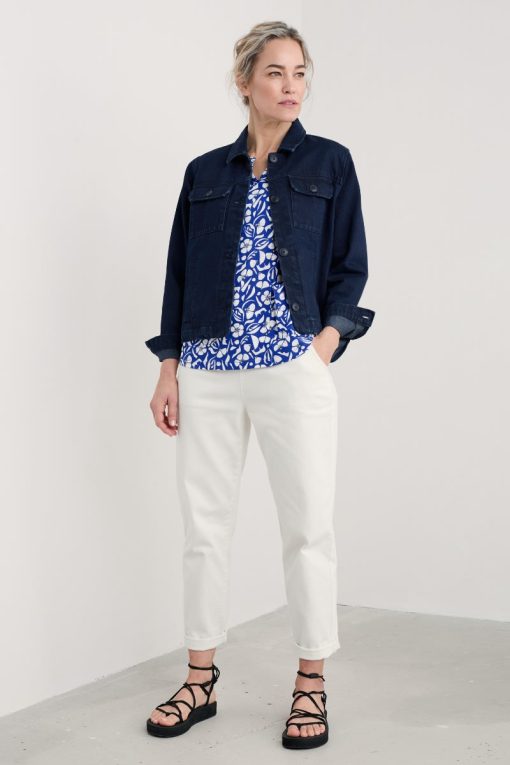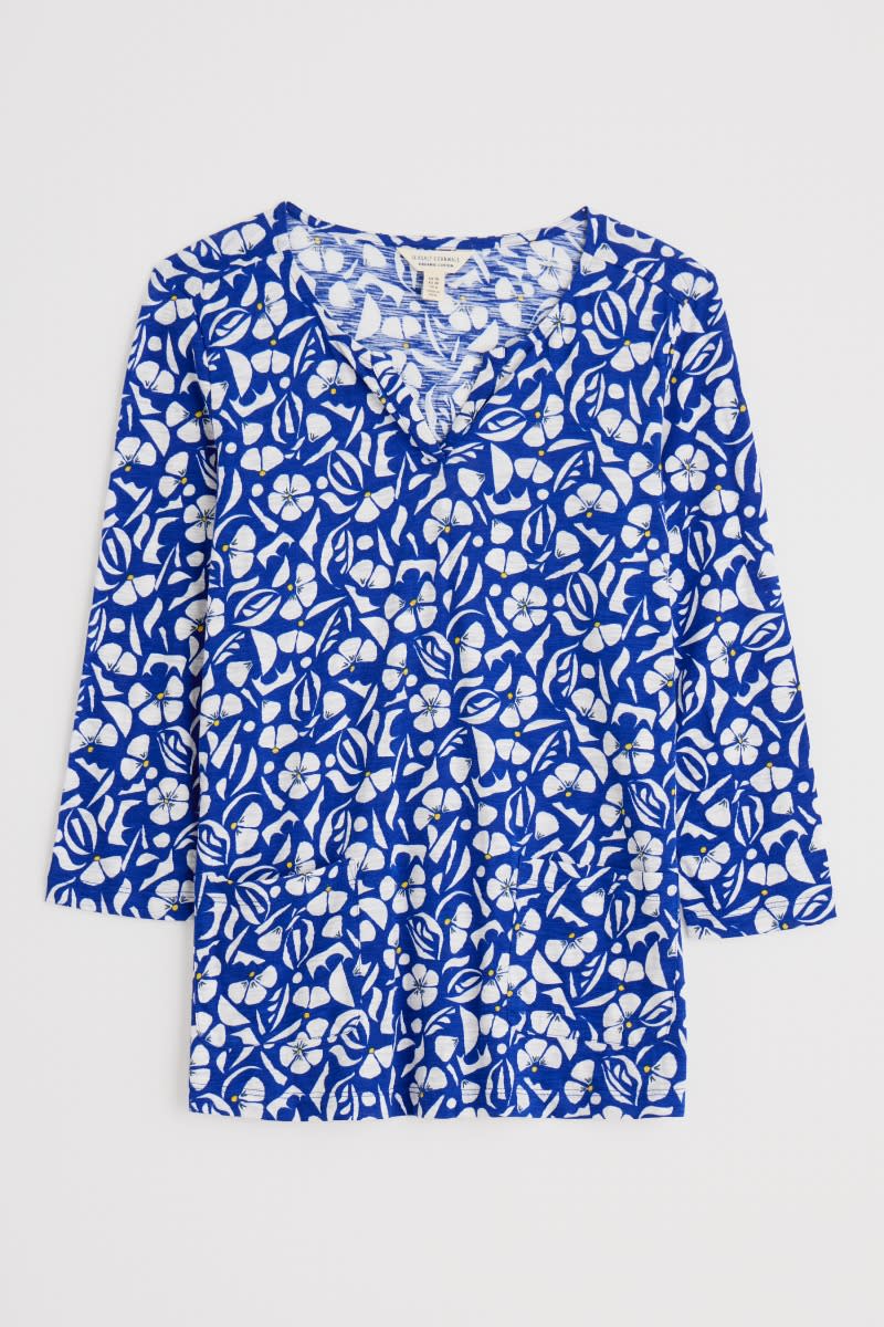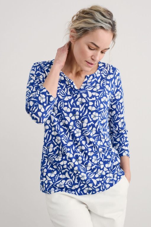 Our Gypsophilia Top is made from soft organic cotton jersey with a unique Seasalt print. Its little notch V neck and two front patch pockets add interest and detail to its relaxed shape, which is perfect for layering over narrow trousers, leggings or a simple skirt,