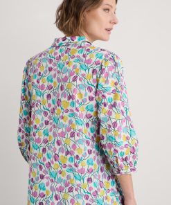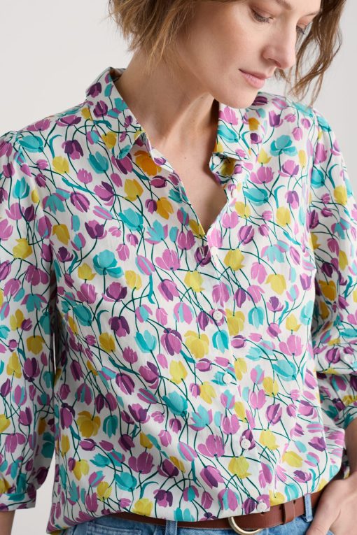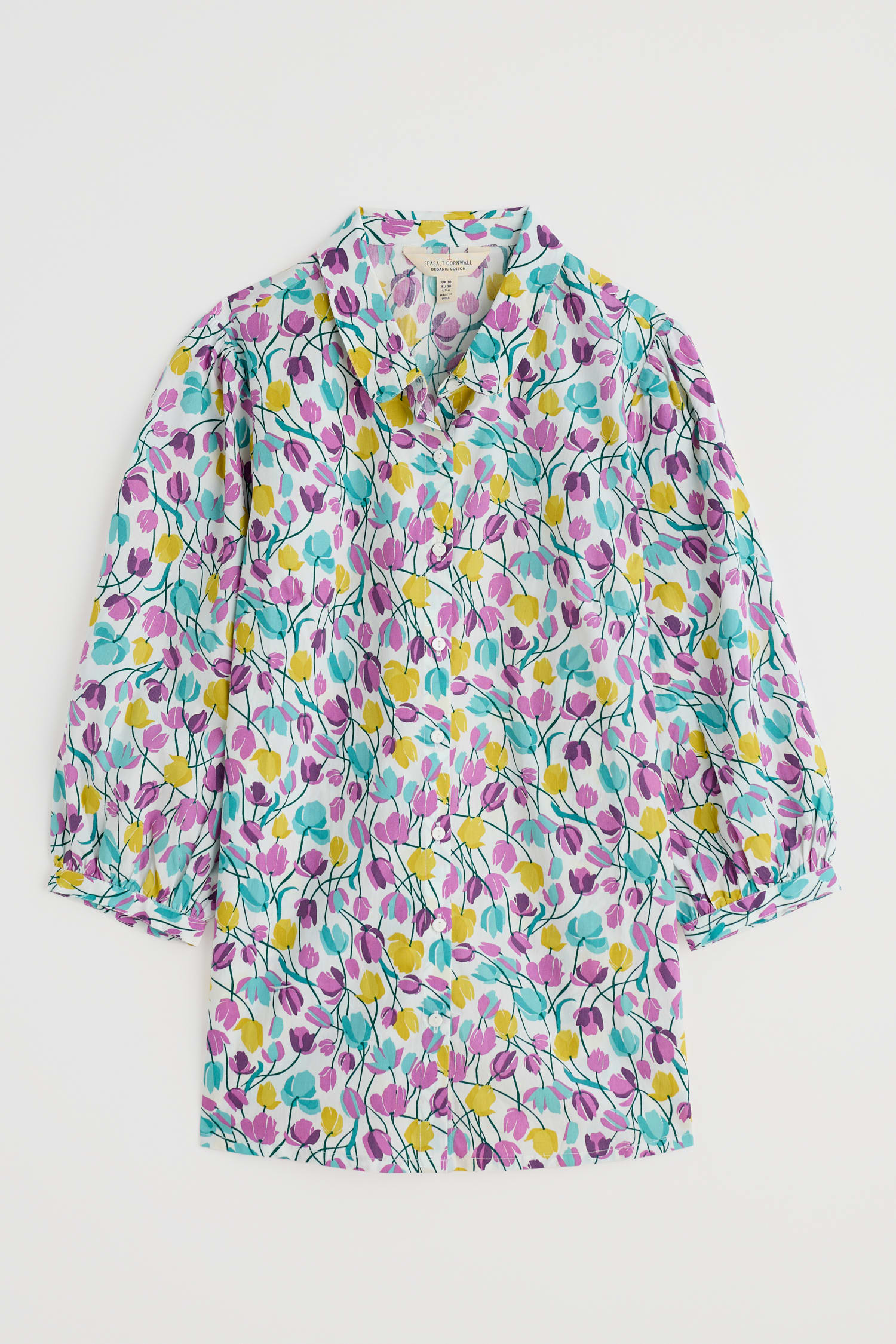A printed organic cotton blouse with gathered cuffs and shoulder seams, which create a lovely volume through the sleeves. A great piece for layering through the seasons.