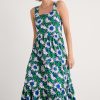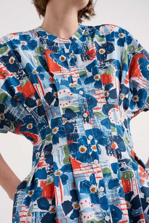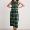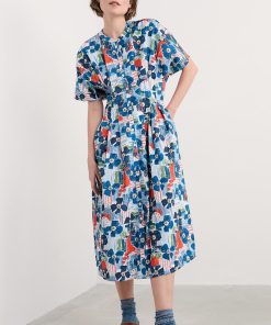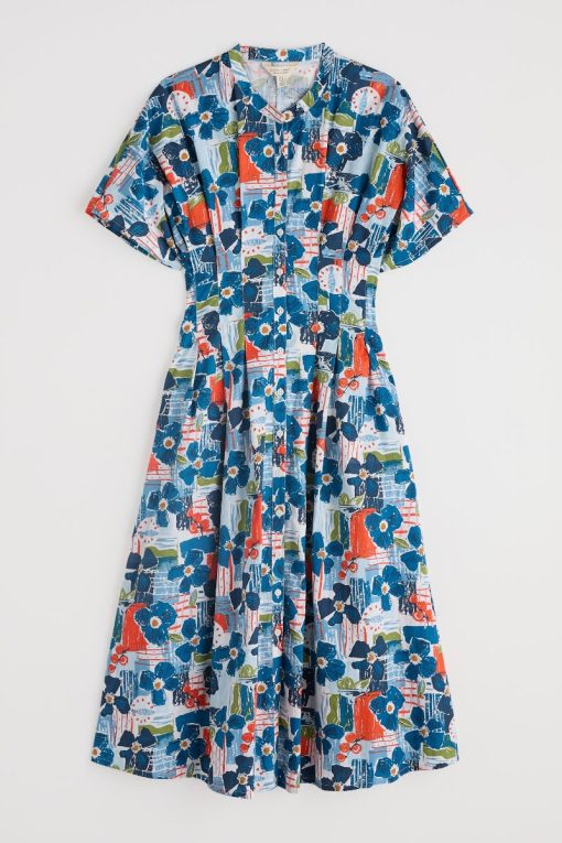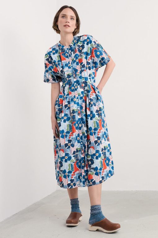 A waisted, shirt-style midi dress with a contemporary silhouette. We’ve given the button-through Lamorna a relaxed fit at the shoulders, with a round scoop neck and short angel sleeves. Pleats bring the dress in at the waist, which then flares out again into the full and floaty skirt. The result is a structural and flattering shape that’s easy to wear and style. Completed with pockets.