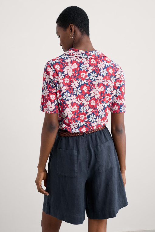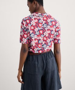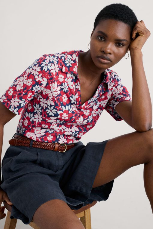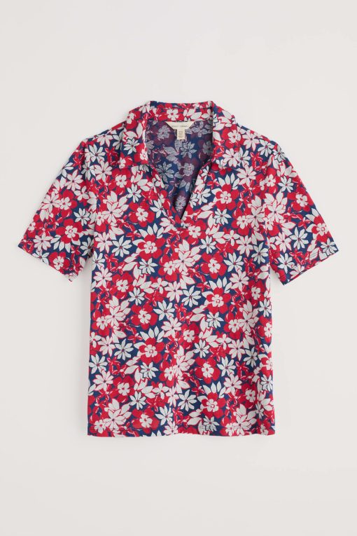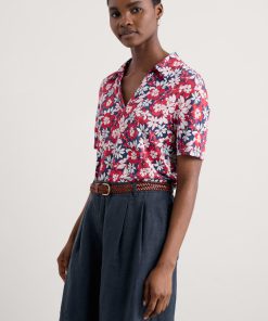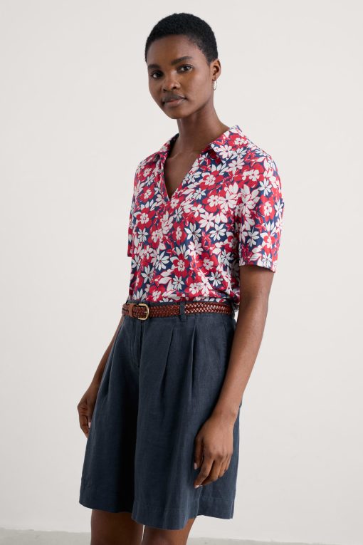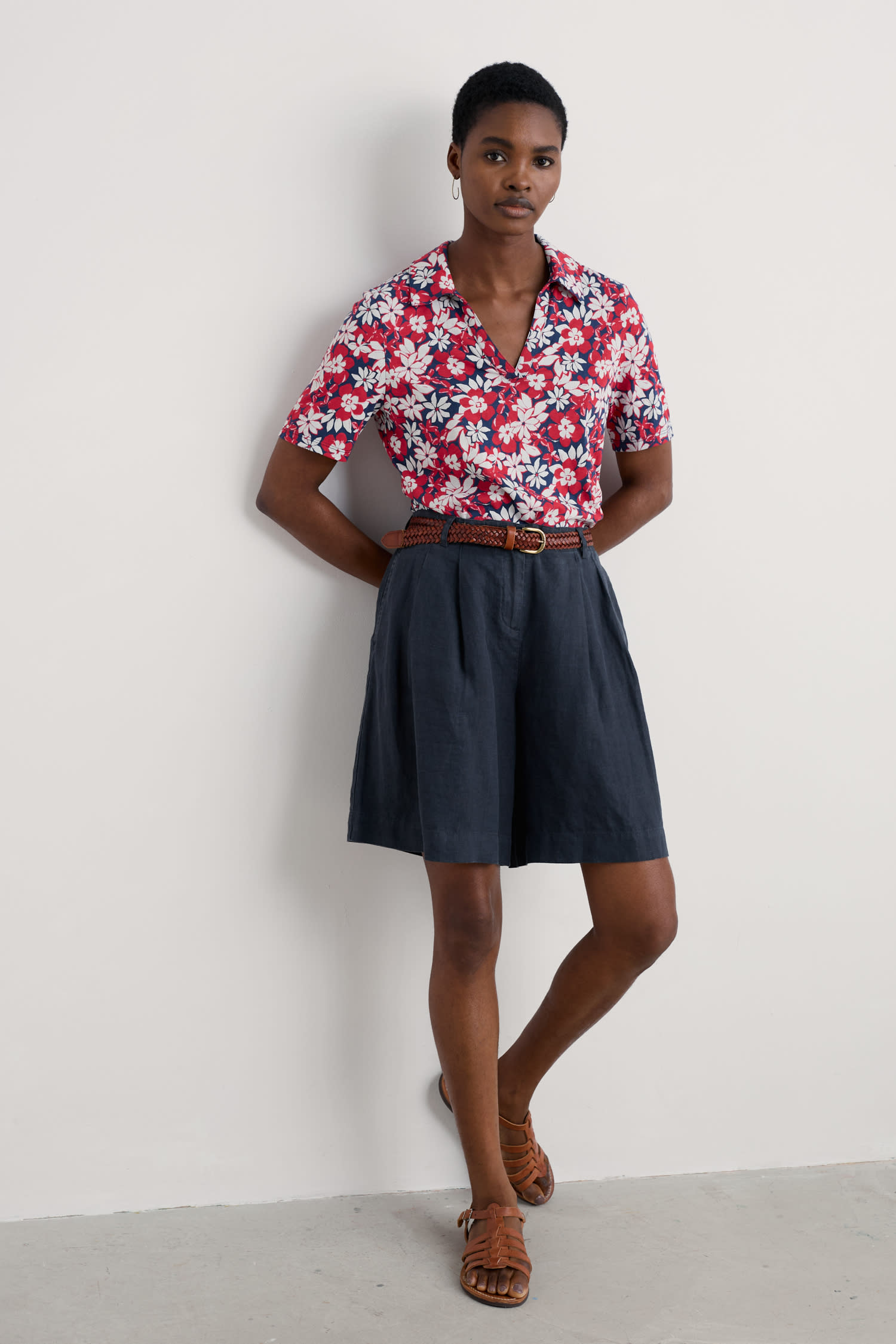 The perfect piece for summer getaways. We’ll pair the easy print on this collared V-neck shirt with plain cropped trousers or shorts. The soft, skimming jersey blend means it’s as cool and comfortable as a T-shirt.