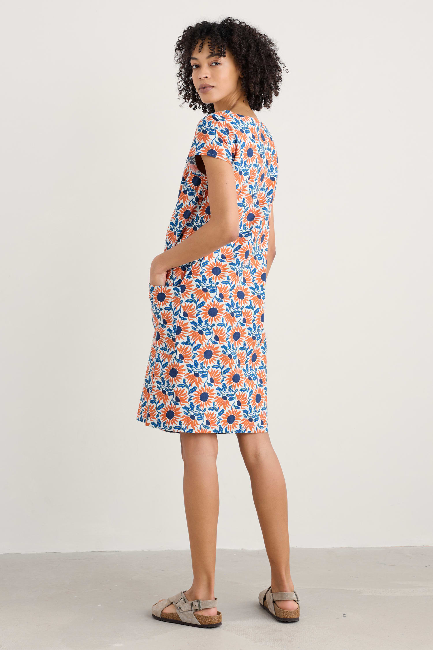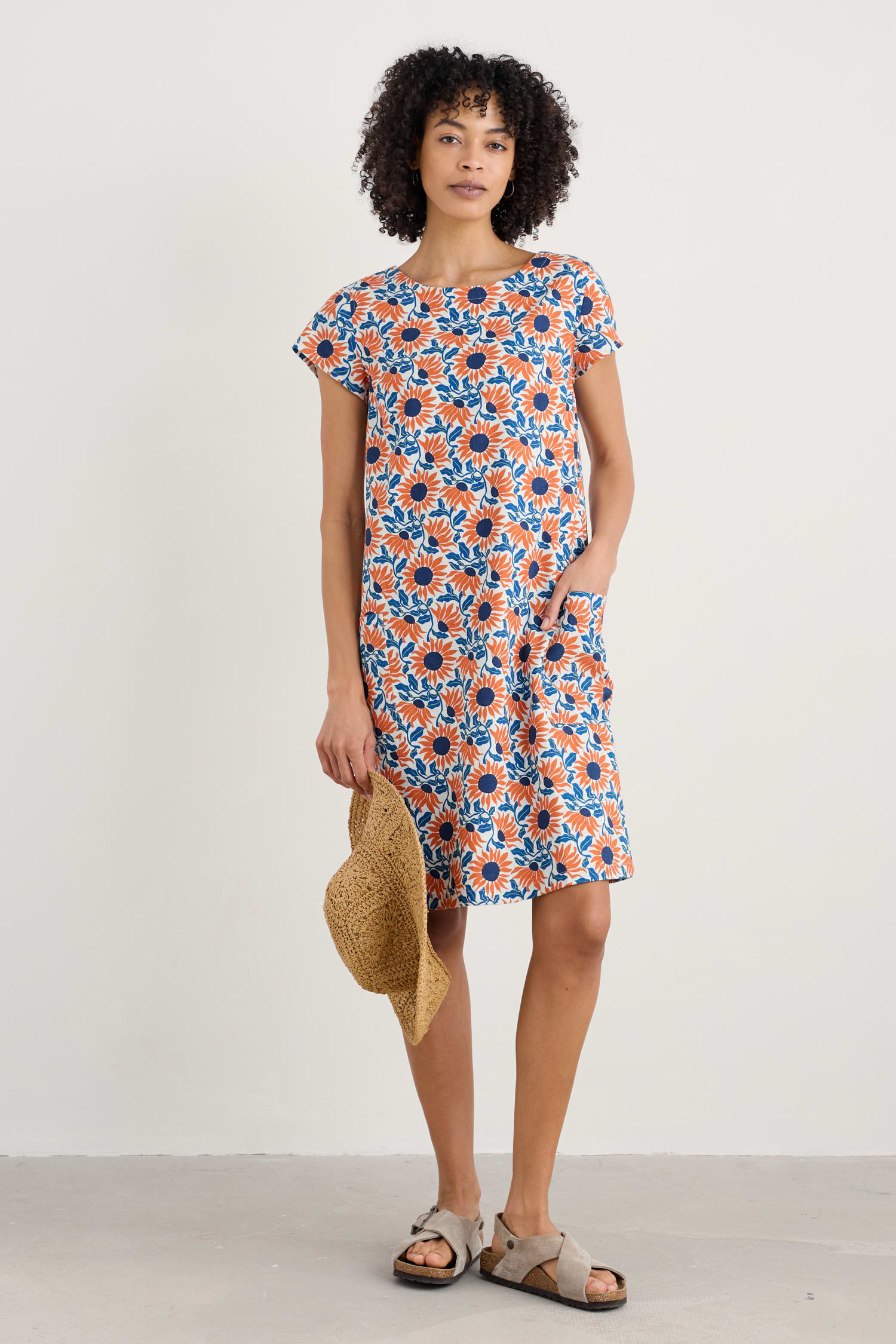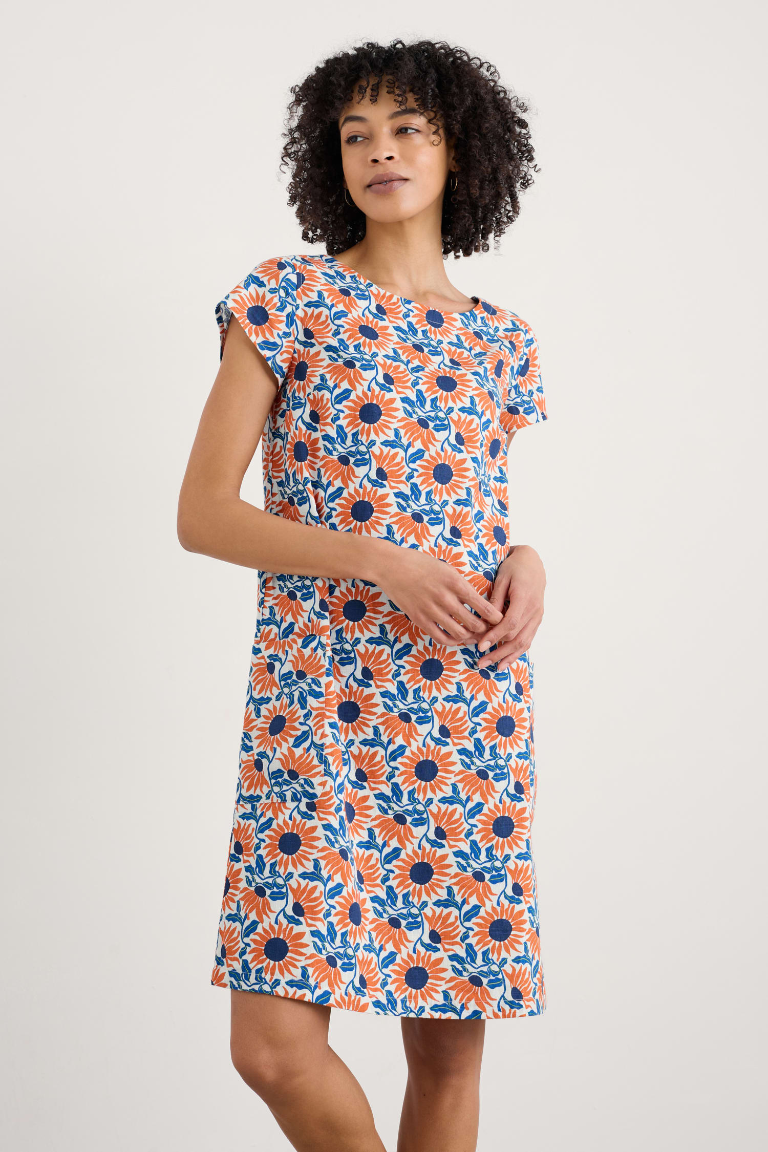 The simple shape of our River Cove Dress makes the most of the statement print. Made from a cool, breathable cotton blend, this knee-length shift dress hangs beautifully. It’s finished with a scoop neck, cap sleeves, a concealed side zip and wrap-around patch pockets. A versatile favourite that’s easy to dress up or down.