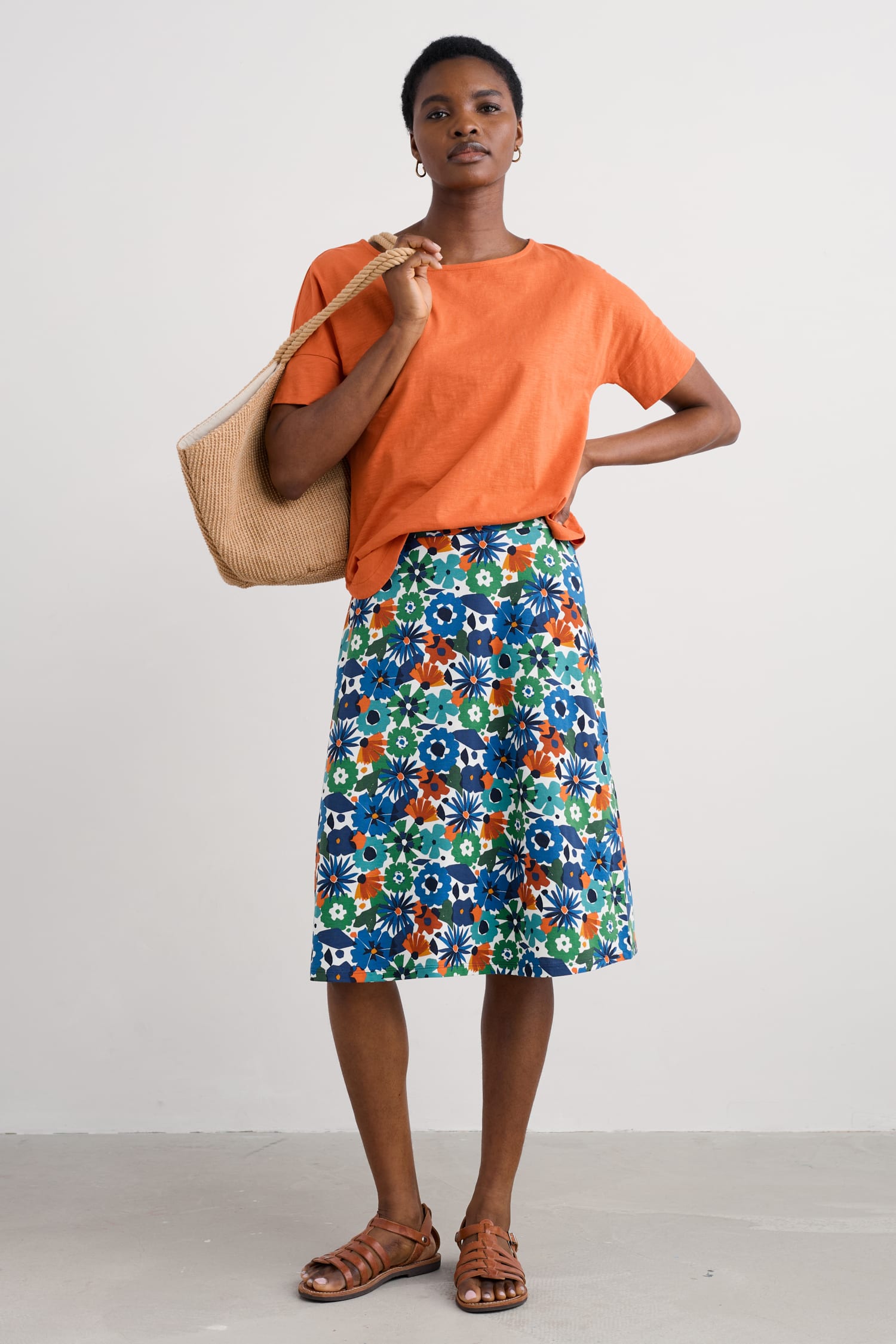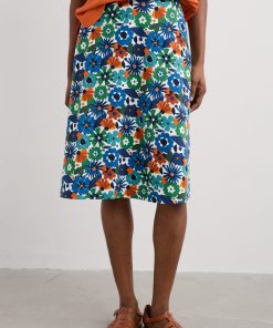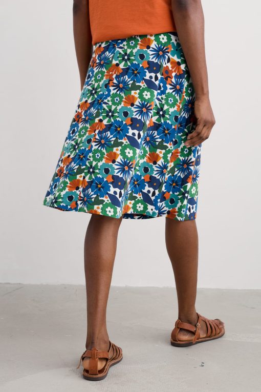 Seasalt Cornwall Women’s Rose A-line Knee Length Skirt | Screenprint Floral Chalk