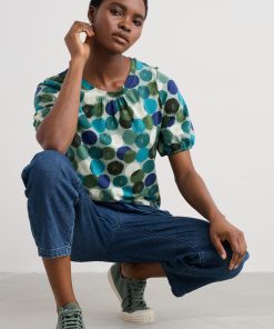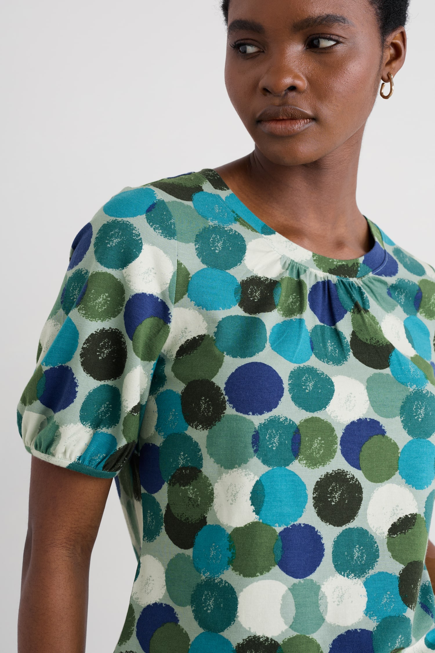 Made from an organic cotton and modal blend jersey, the Seaberry Top has a soft and smooth texture. We?ve added subtle gathers underneath the crew neck which help the top to flow naturally as you move. The short sleeves are slightly puffed, with additional gathers at the cuff that create a more delicate silhouette. Style with jeans, or layer under a knitted vest.