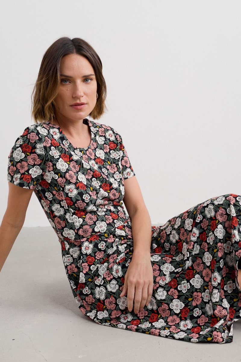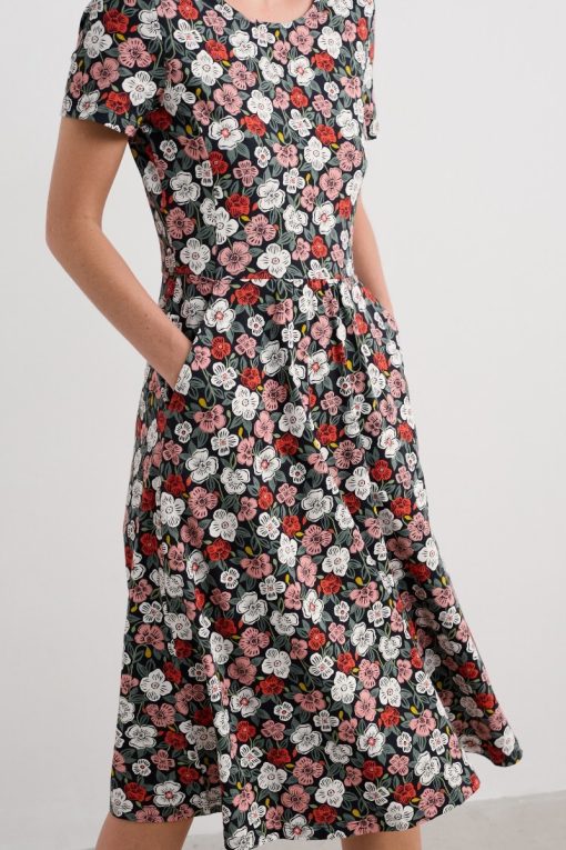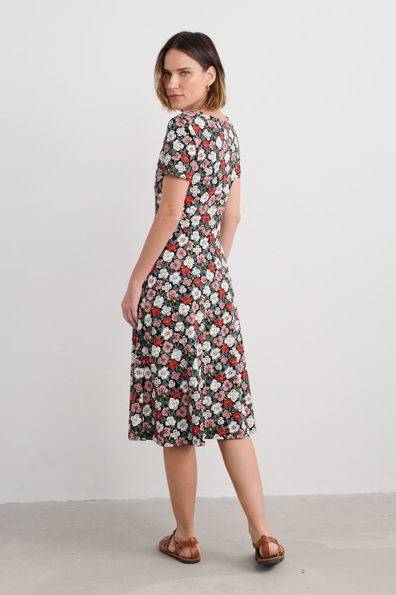 Made from soft and breathable organic cotton jersey with a touch of stretch for extra comfort. Falling just below the knee, it has an easy-to-wear, feminine fit-and-flare shape with gentle gathers at the waistband.