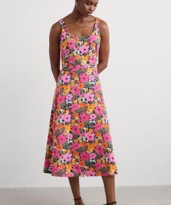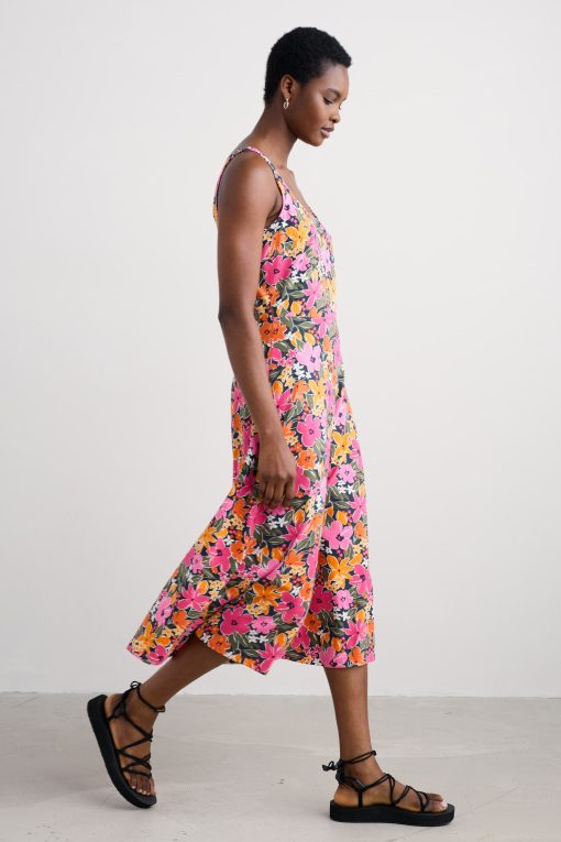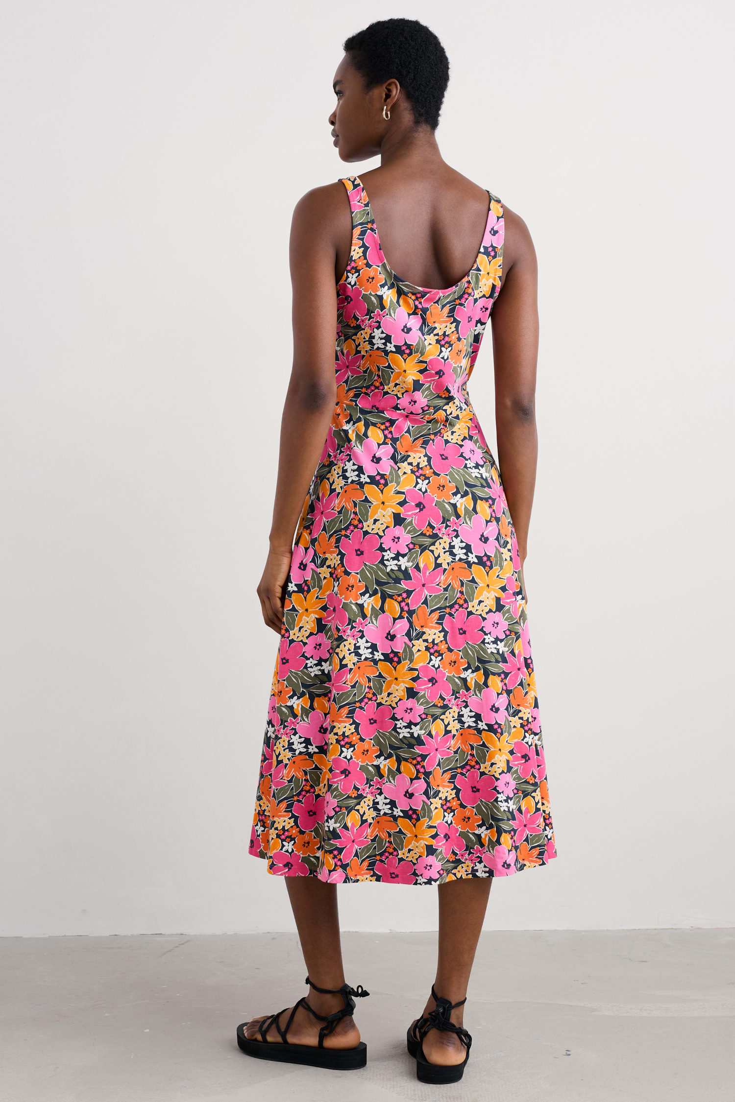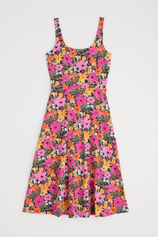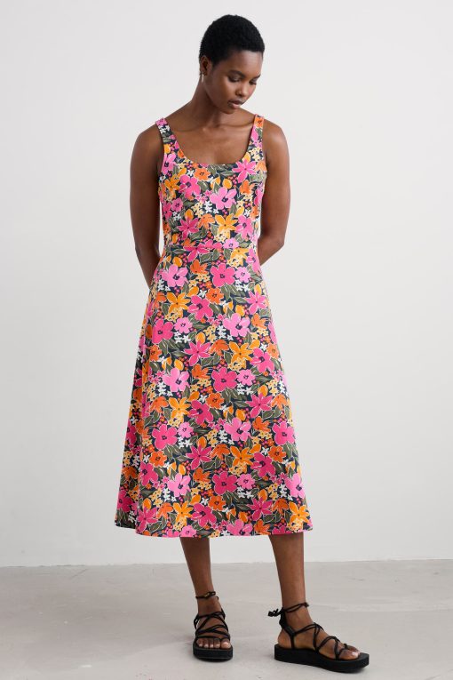 Soft organic cotton jersey dress with a fit-and-flare shape and a stylish scoop neck. Pair with simple sandals and a summer hat for long, hot days by the shore or strolling in the city, and dress up with statement accessories for celebrations with friends.