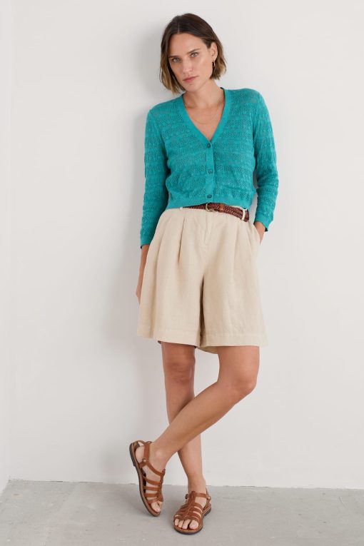 Knitted from soft, breathable organic cotton, with a gently textured pointelle stitch, this is the perfect throw-on style for summer days exploring or easy evenings with friends. The semi-fitted shape falls to the hip, a versatile length we love with tea dresses or a casual T-shirt and jeans.