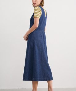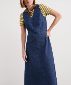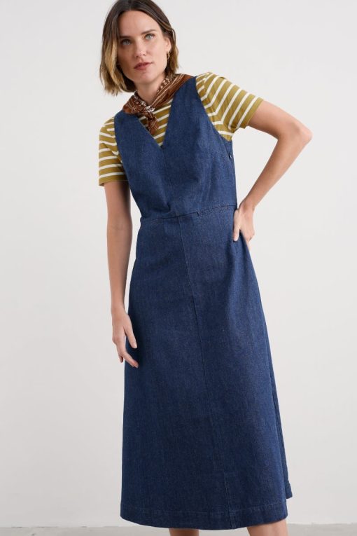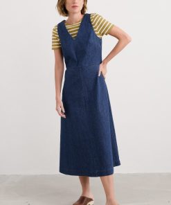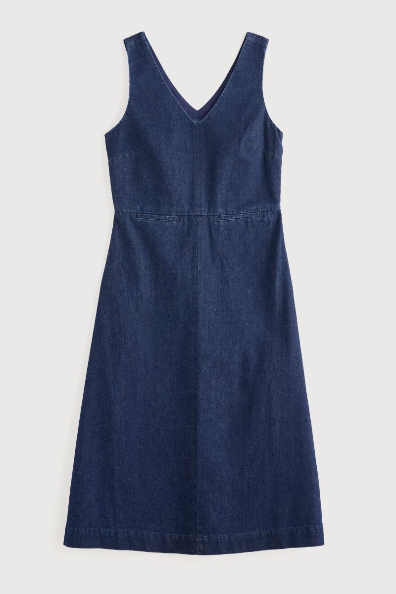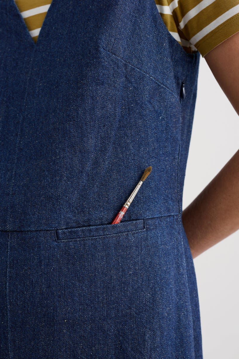 Meet a new-season favourite: our Audrey pinafore dress. It has a full midi-length skirt, with darts at the bust and waist emphasising the waisted shape. Soft v-necks at the front and back add a stylish feature, while welt pockets at the waistband provide a surprising little detail. A versatile piece to complement your choice of top.