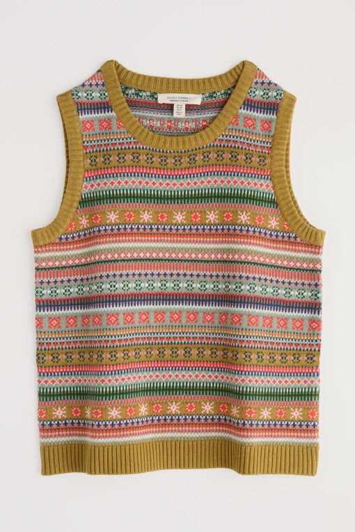 Women’s Fair Isle Knitted Vest | Seasalt Cornwall | Carved Relief Pear Multi