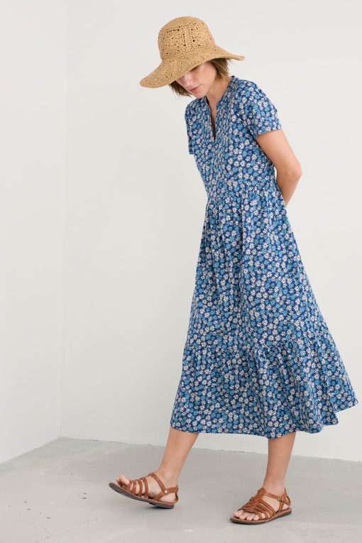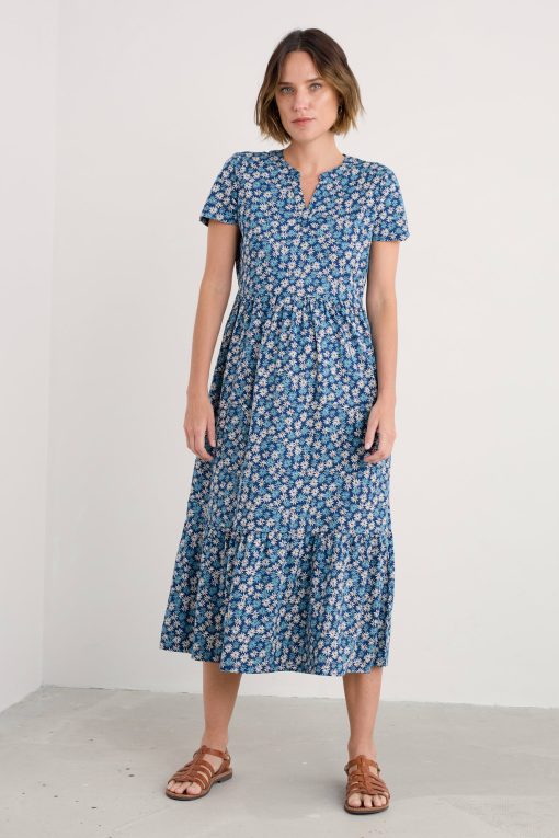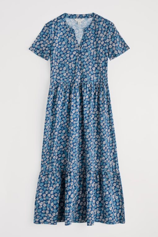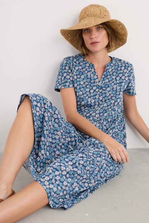 Women’s Jersey Above-ankle Dress | Seasalt Cornwall | Screenprint Daisy Marine