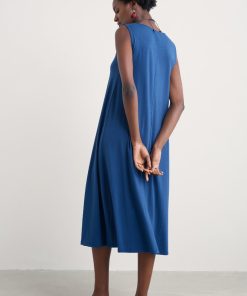 A timeless dress for summer made from a soft jersey blend. The slim-fitting sleeveless dress flares out towards the midi-length hem, and we’ve added a touch of stretch for comfort and fit. A soft scoop neckline completes the lovely simplicity of this versatile piece.