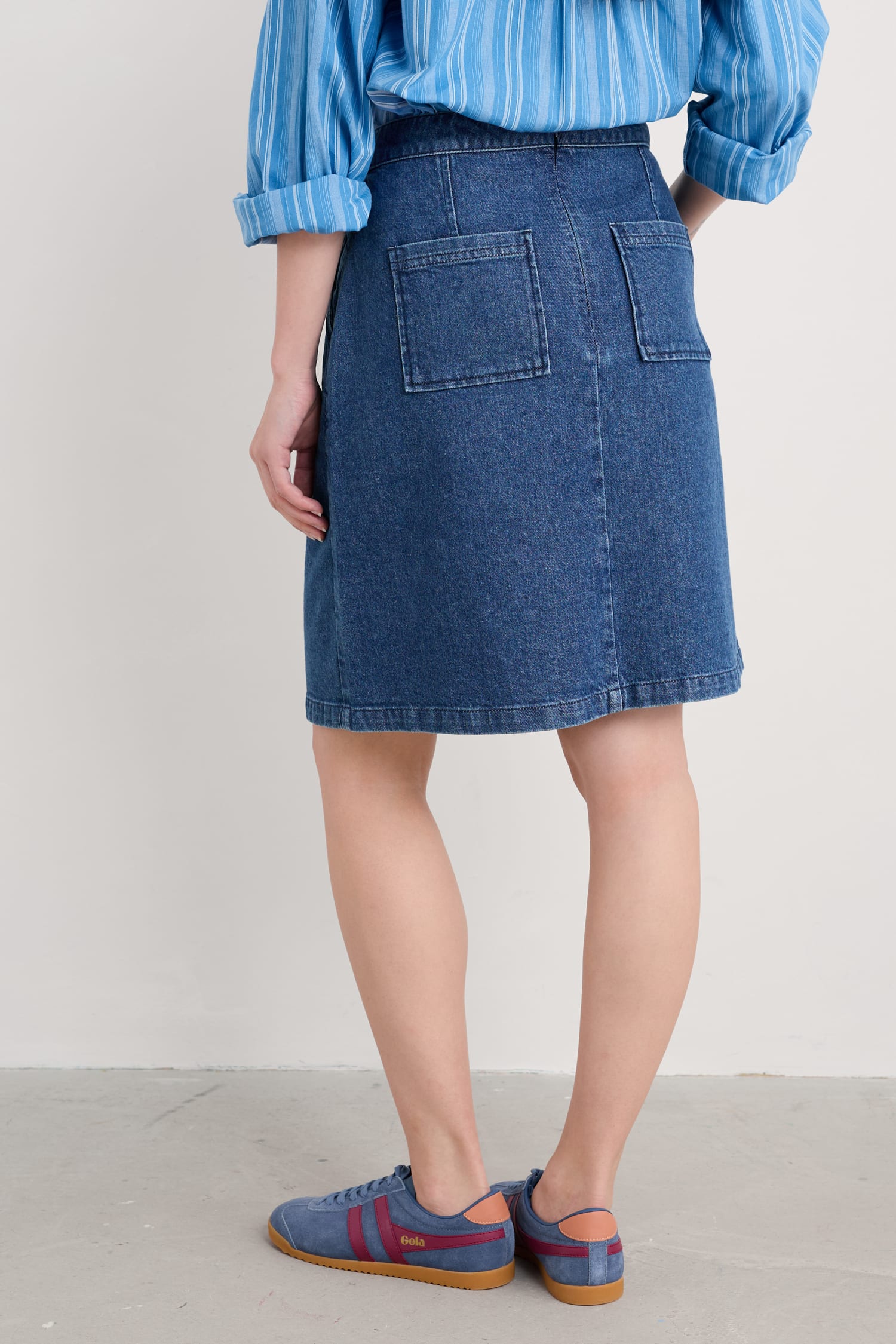 Our Dovetail skirt is one of those versatile pieces you’ll reach for time and time again. The A-line silhouette finishes just above the knee – the perfect length to wear with long boots in the winter or sandals in the summer. A pair of generous side pockets completes the look.