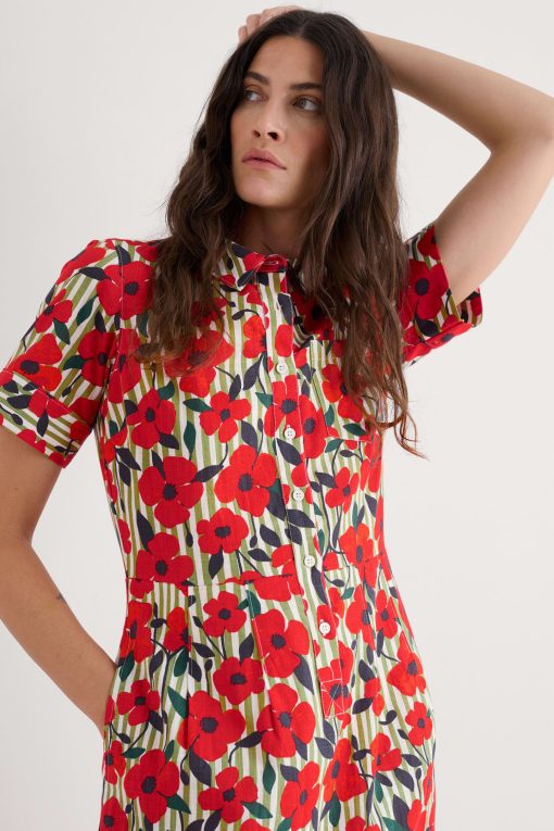 This season, add a versatile shirt dress to your wardrobe. Our short-sleeve Birch Glade is crafted from soft and breathable organic cotton. Its shirt-style bodice features a collar, smart buttoned placket and top patch pocket, with bust darts for a flattering shape. At the waist, it opens out into a full, midi-length skirt, complete with a handy pair of in-seam pockets.