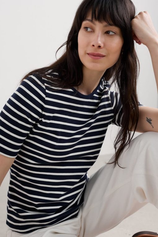 A favourite T-shirt, in a short-sleeve edition. The Gorse Lane is made from a soft GOTS-certified organic cotton blend, with a ribbed texture and added stretch for comfort and fit. The perfect staple for your summer wardrobe or for layering on cooler days.