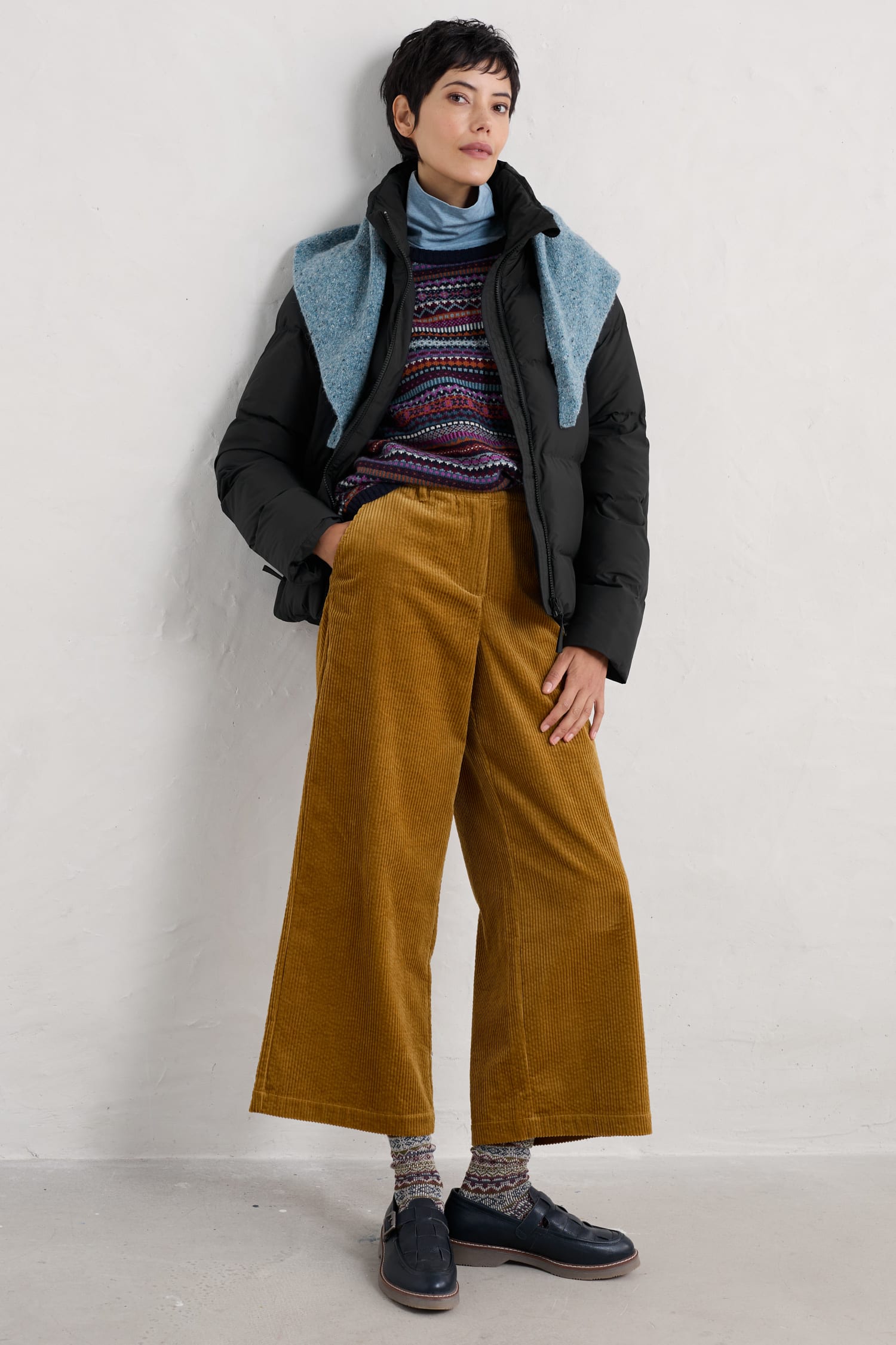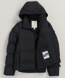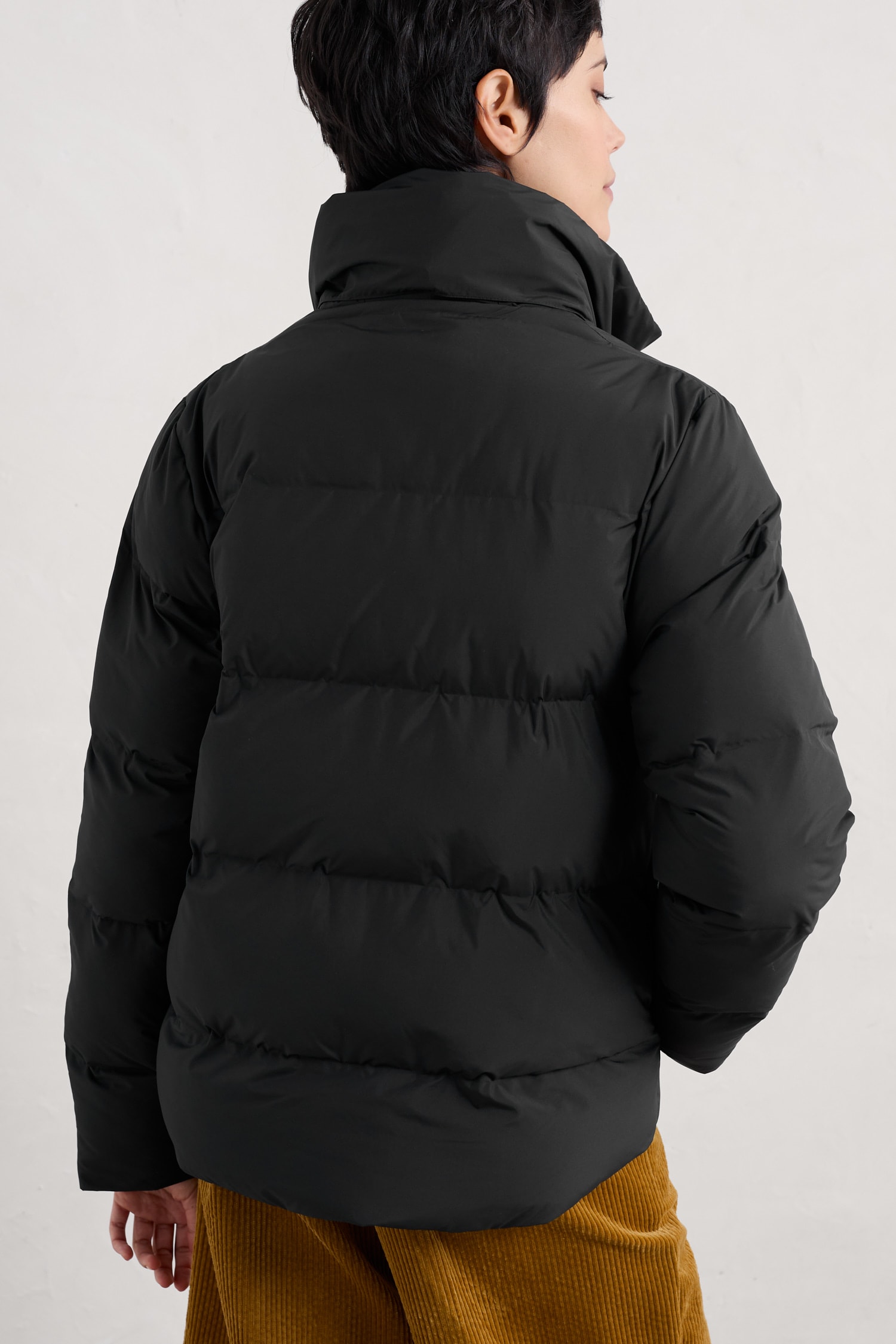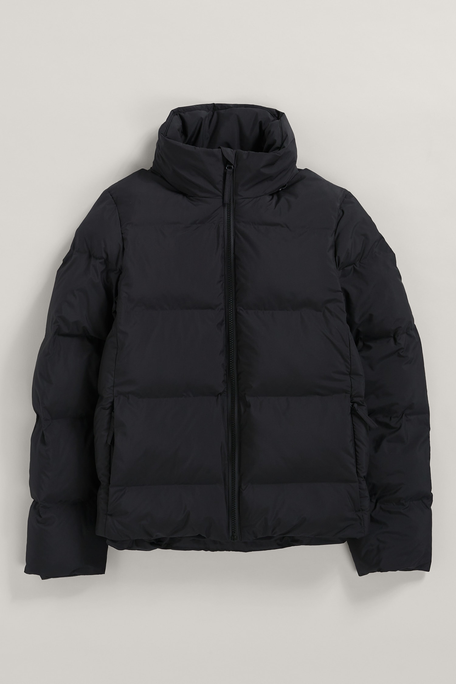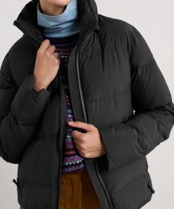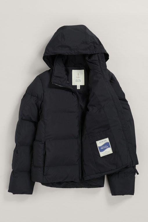 Our latest short waterproof has a stylish boxy fit and a modern slim shape. It’s made from recycled polyester, and is gently padded for extra cosiness. The hood is also lightly padded, and folds away neatly into the snug high collar when you don’t need to wear it. Features such as fully taped seams and zip-fastening pockets keep the rain at bay. Look out for vibrant prints that bring a touch of colour to cloudy days.