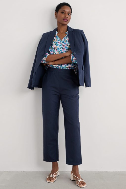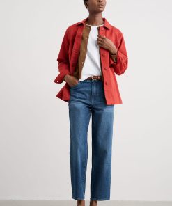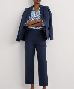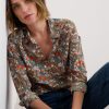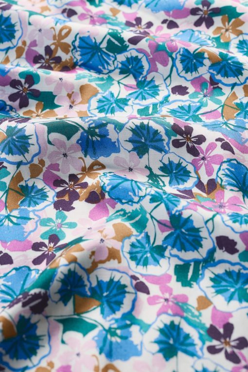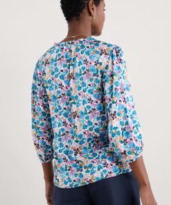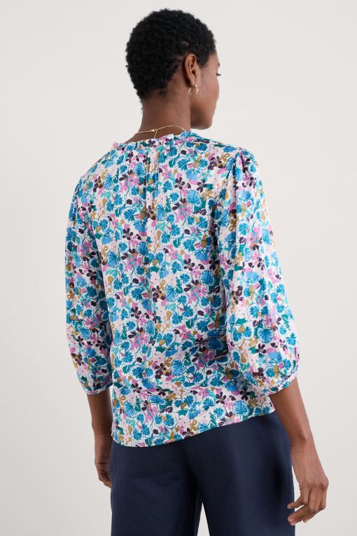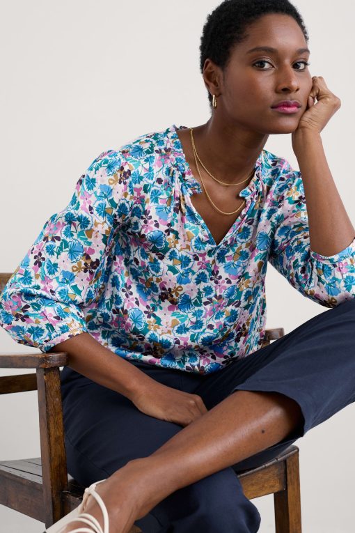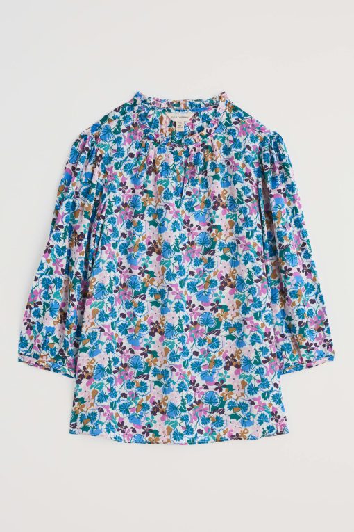 Women’s Satin Frill Neck Print Top | Seasalt Cornwall | Spring Geraniums Chalk