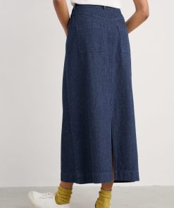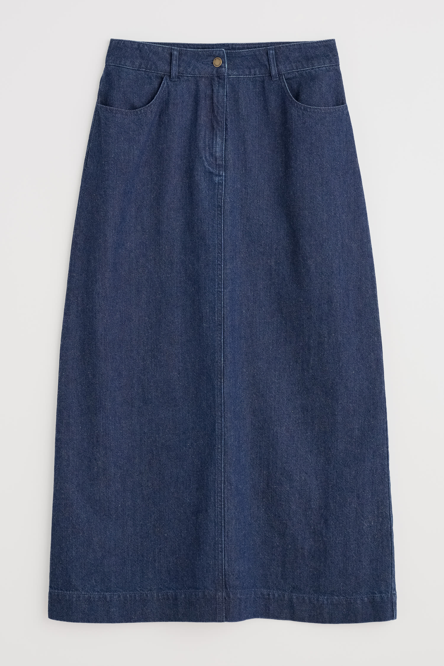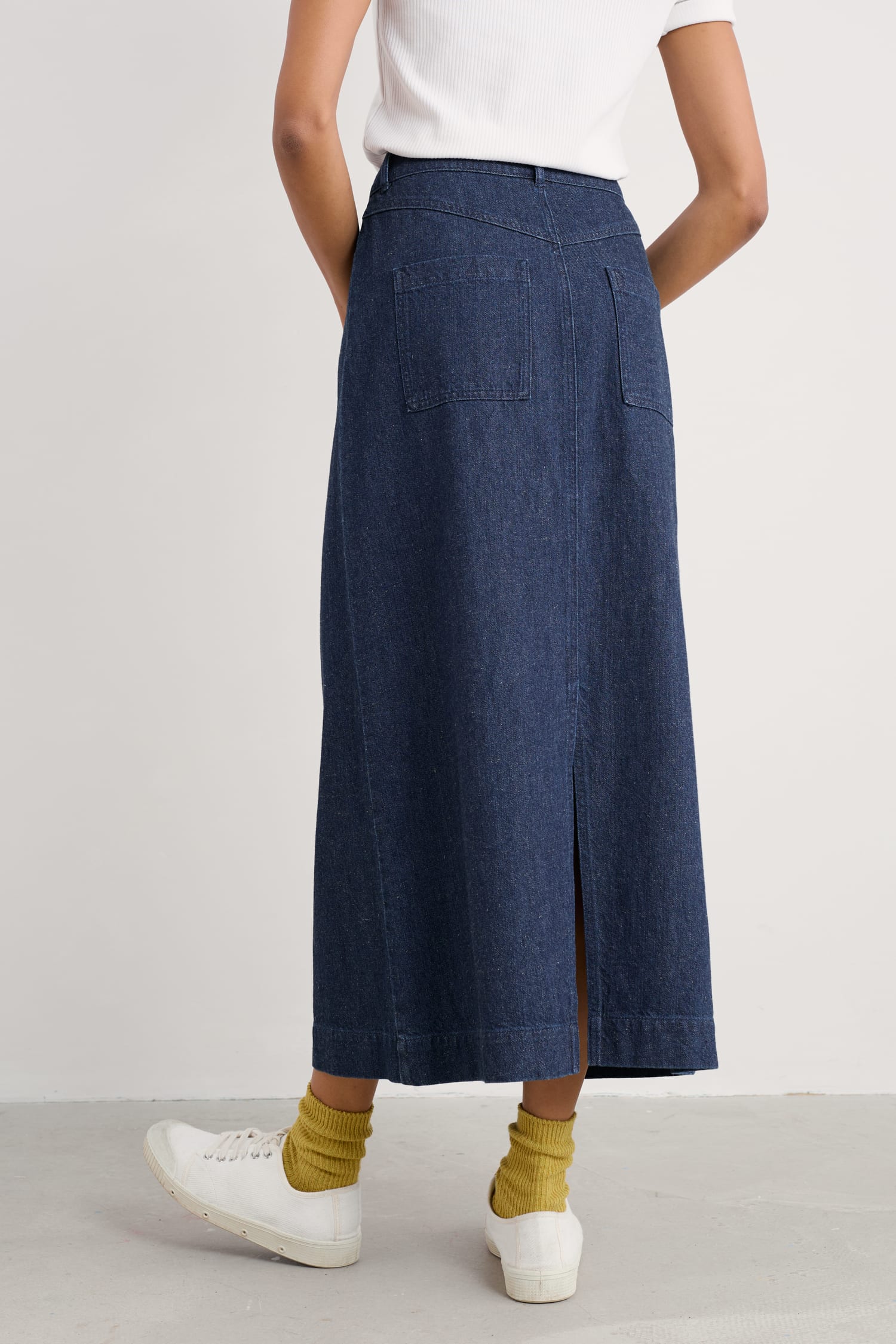 Every wardrobe needs a simple denim skirt, and our latest edition is a versatile styling piece, with a modern, straight fit. The V-shaped split at the back gives you ease of movement as well as an extra detail, while we’ve added a touch of stretch to the organic cotton for comfort and fit. Wear throughout the seasons, teamed with pumps and a classic T-shirt.